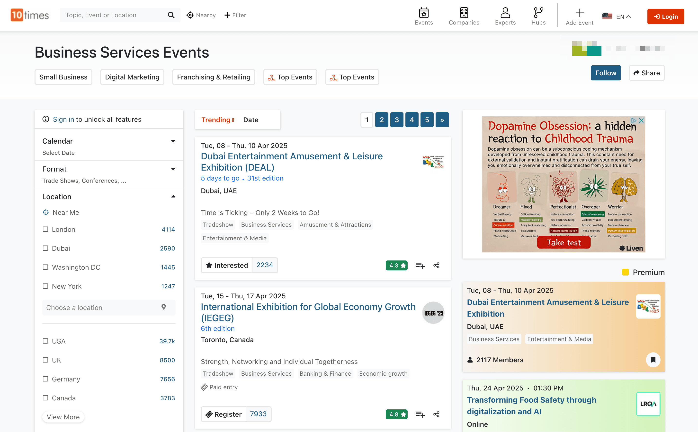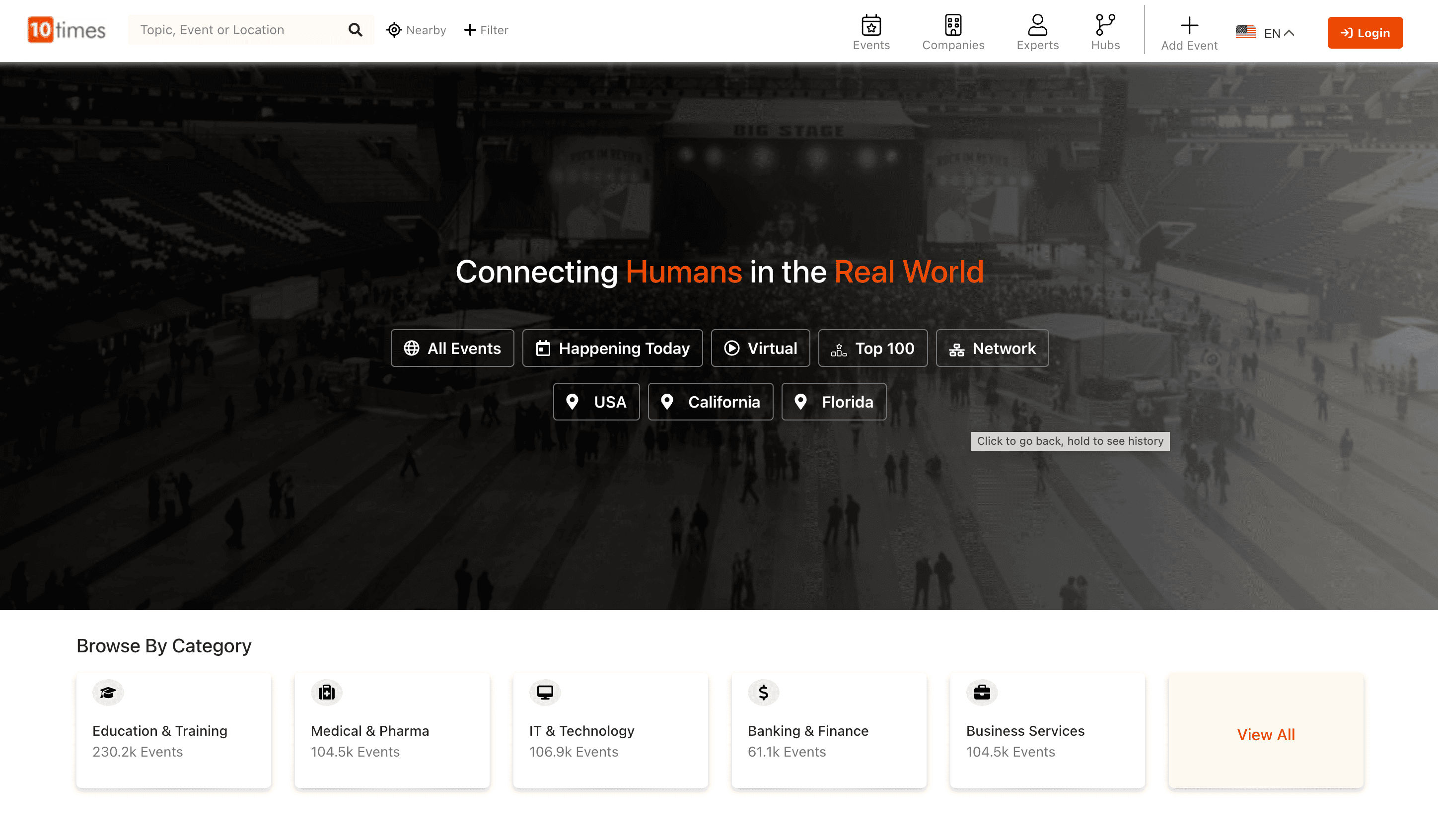 - Go to the destination page, for example: 10Times Event Search Result.