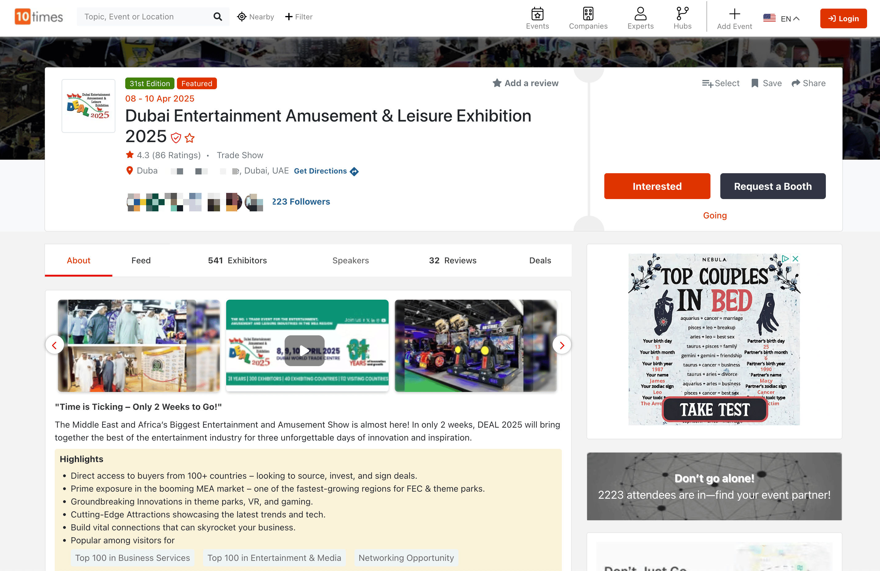 - Go to the destination page, for example: 10Times Event Details.