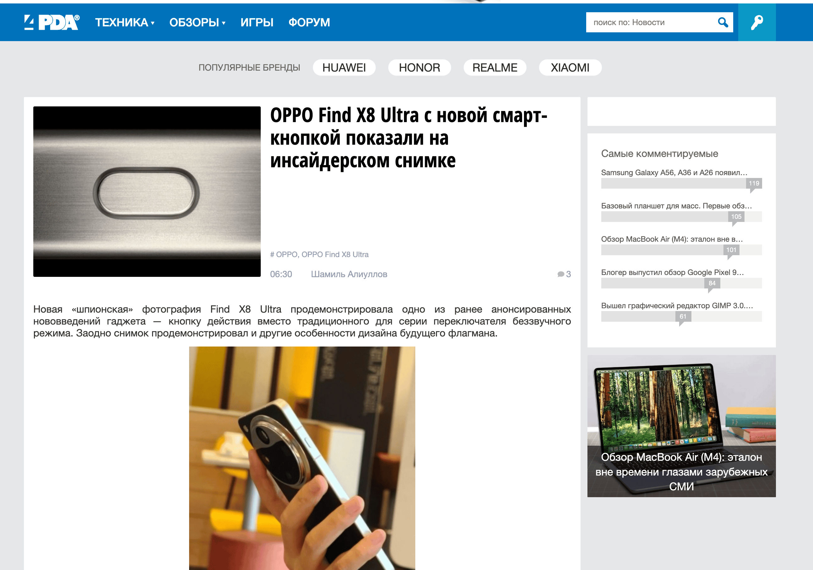 - Go to the destination page, for example: 4PDA News Article.