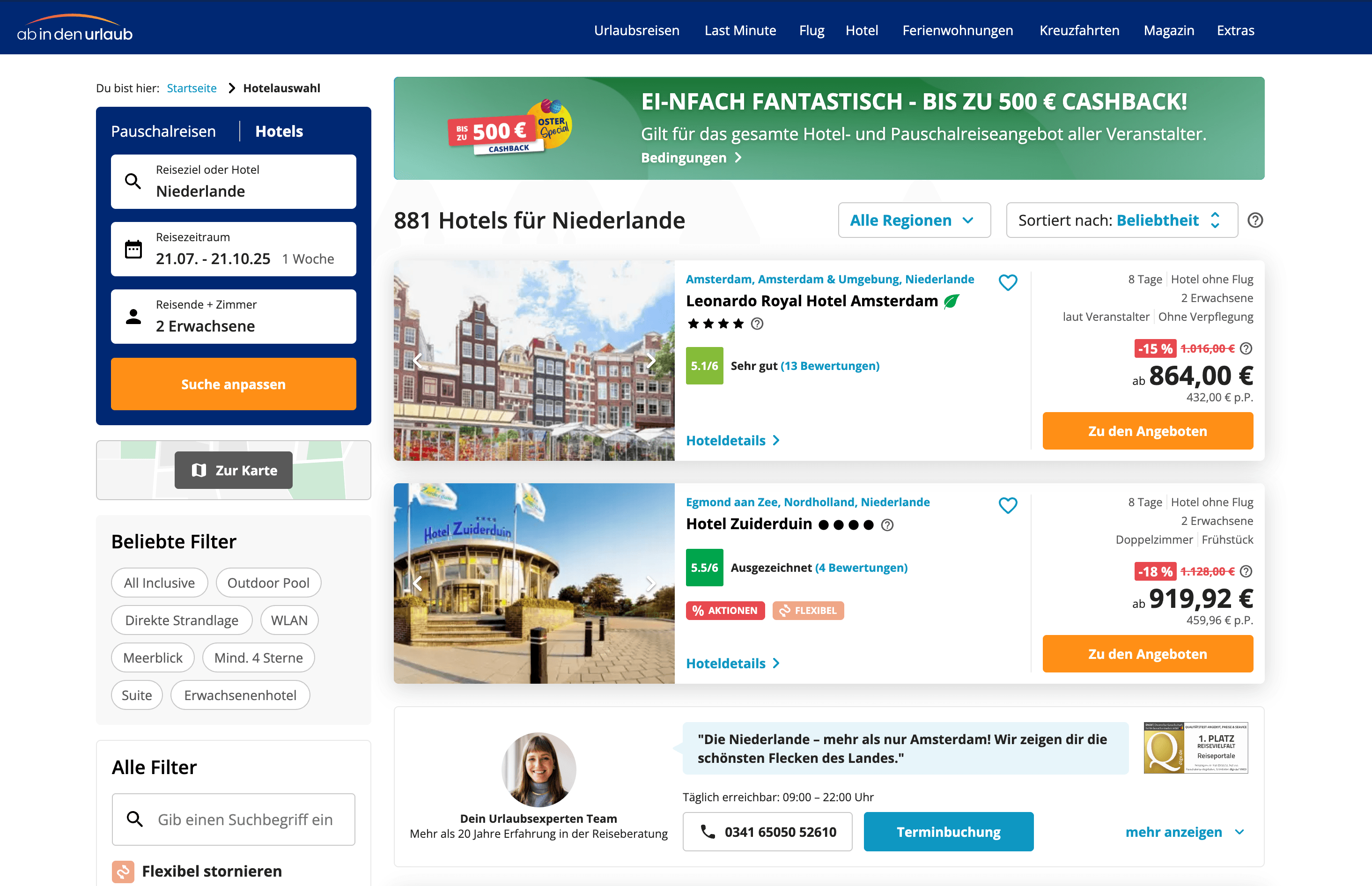 - Go to any hotel’s detail page on ab in den urlaub.