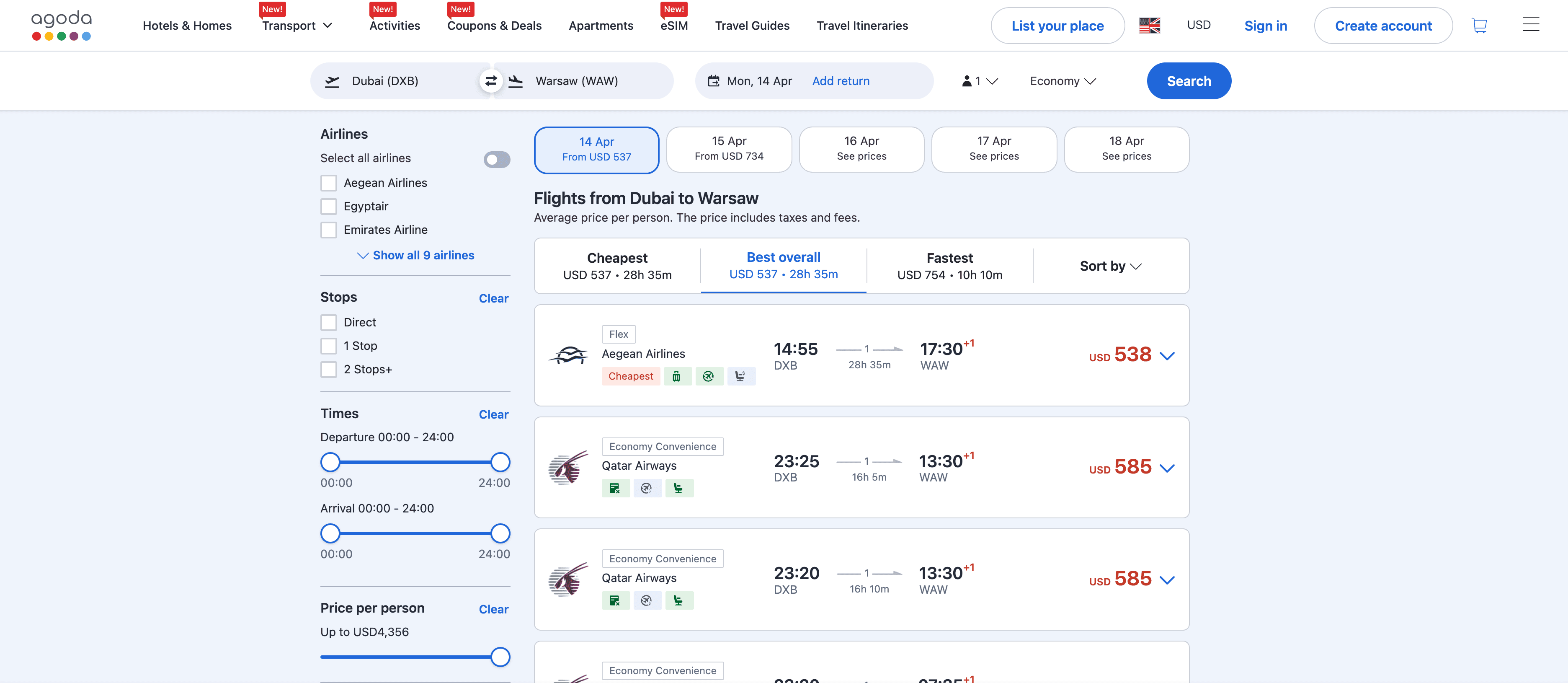 - Go to the destination page, for example: Agoda Flight Search Result Page.