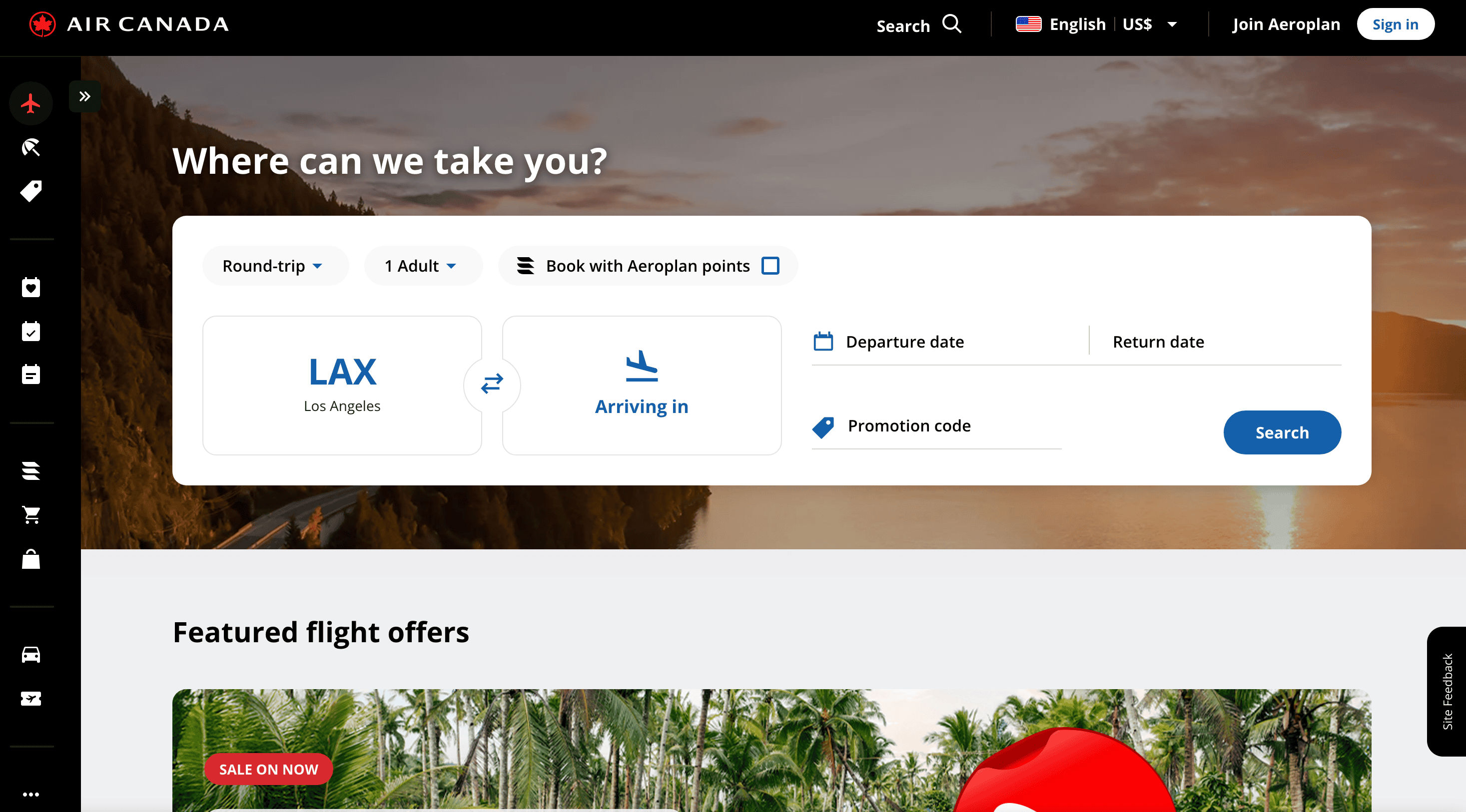- Go to the destination page, for example: Air Canada Flight Search Result.