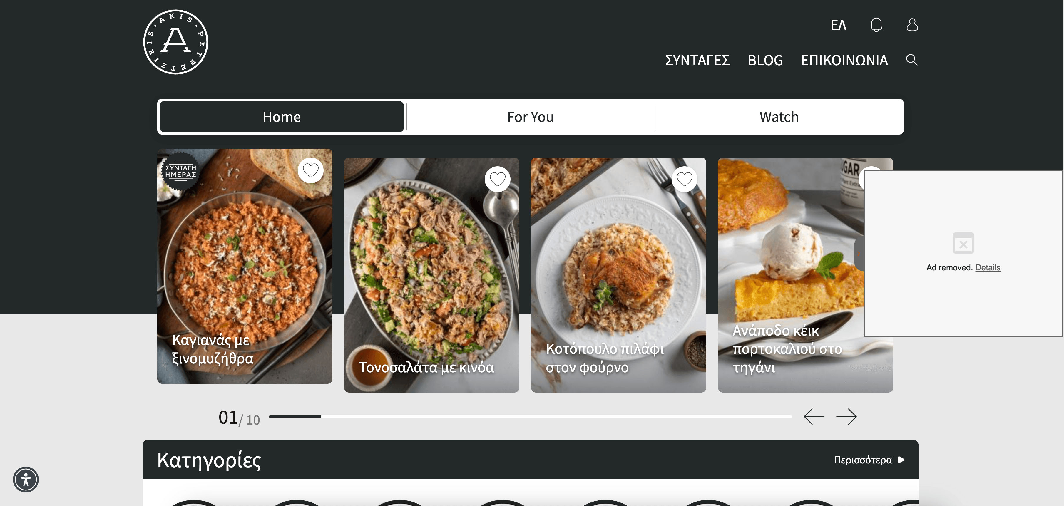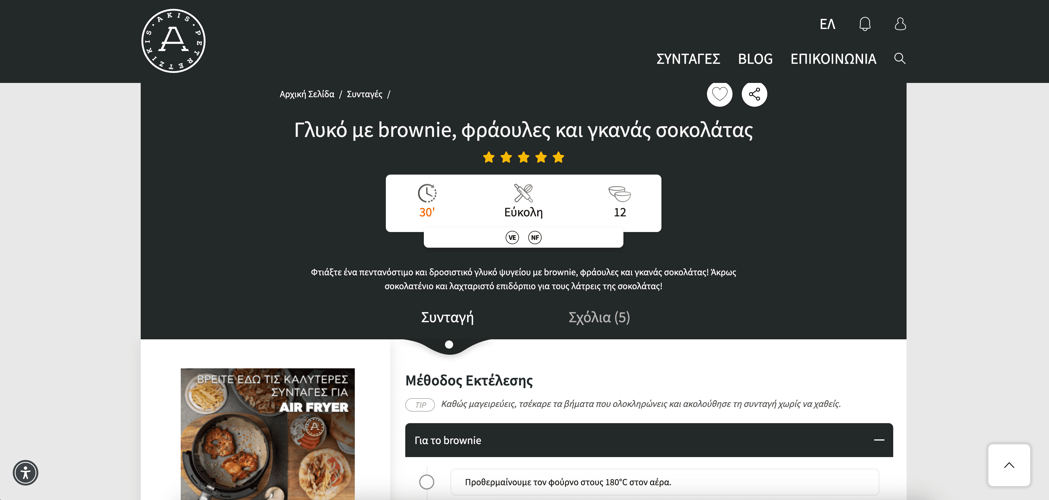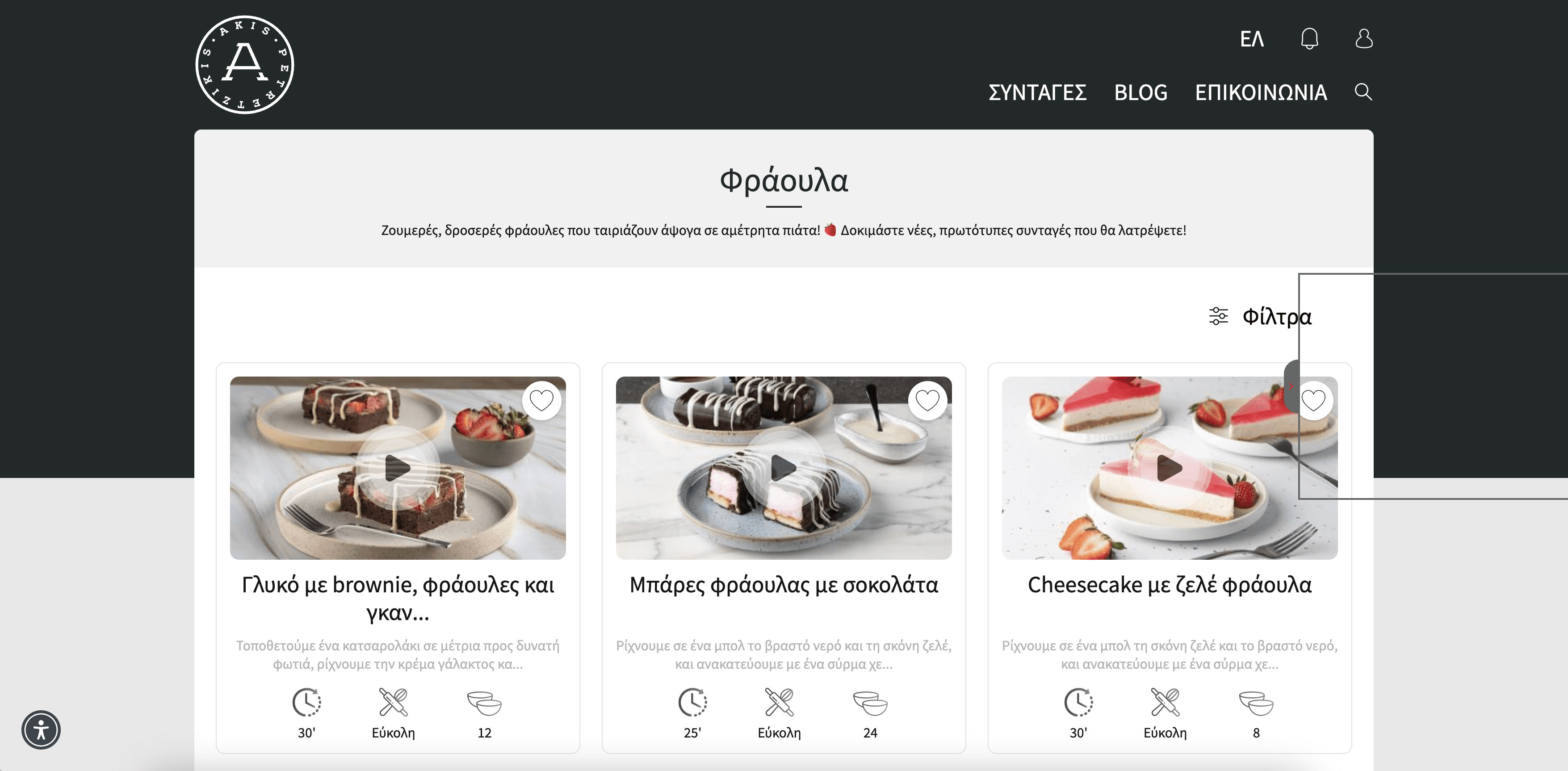 - Navigate to Akis Petretzikis Ingredient or Recipe Page: Go to any ingredient category or recipe details page.