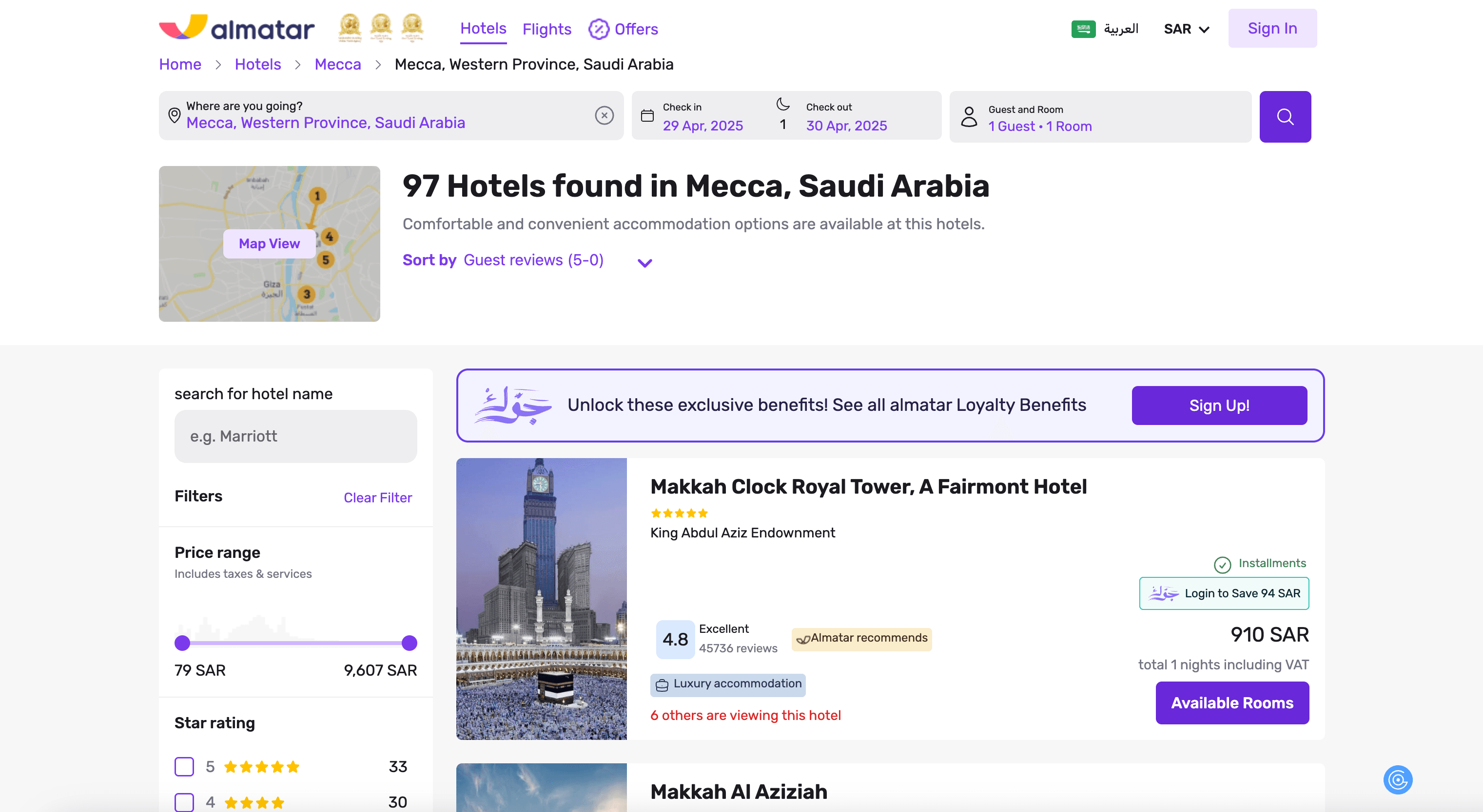- Navigate to almatar Hotels or Flights Page: Go to the almatar hotels search or almatar flights search page.