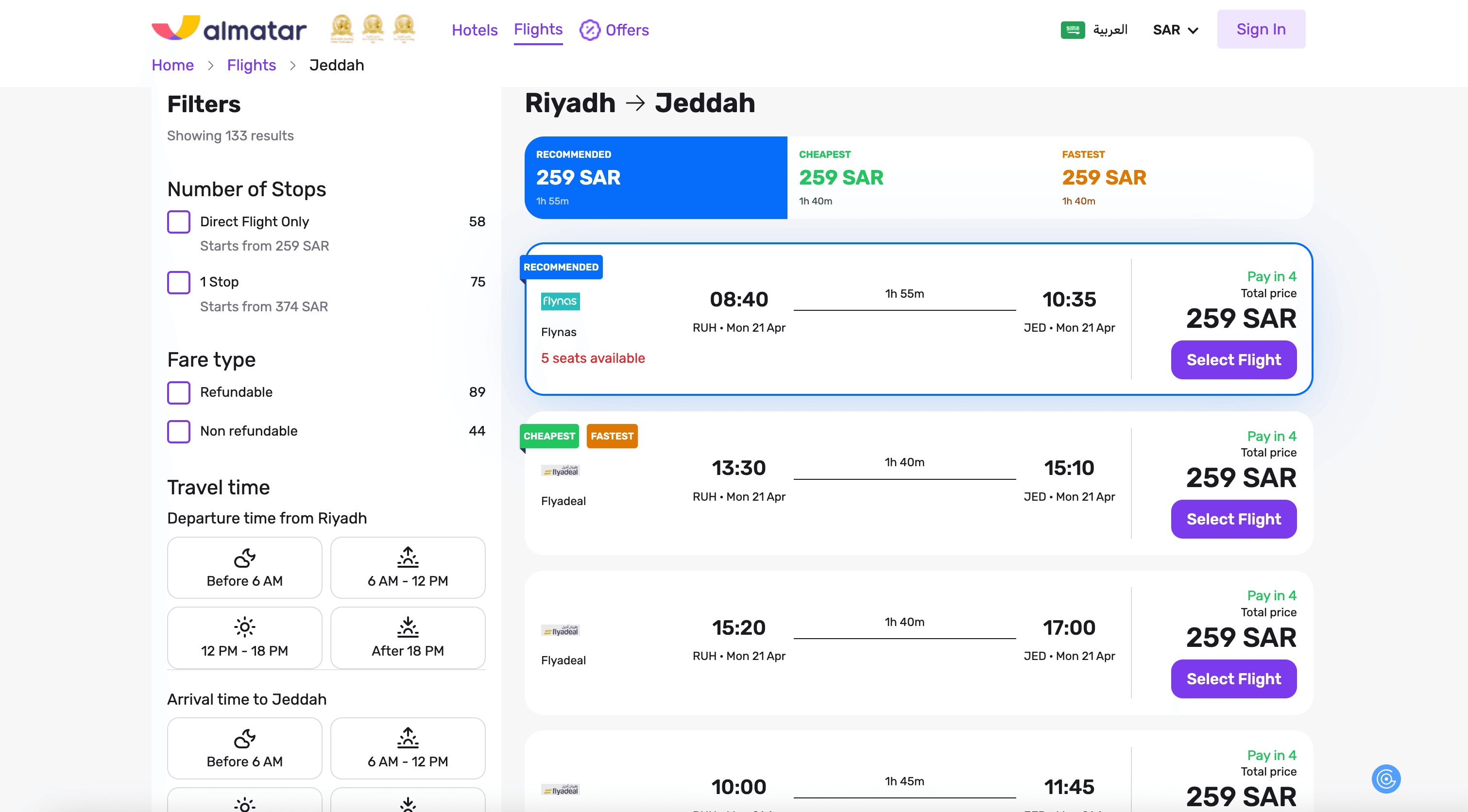 - Go to the destination page, for example: almatar Flights Search Result.