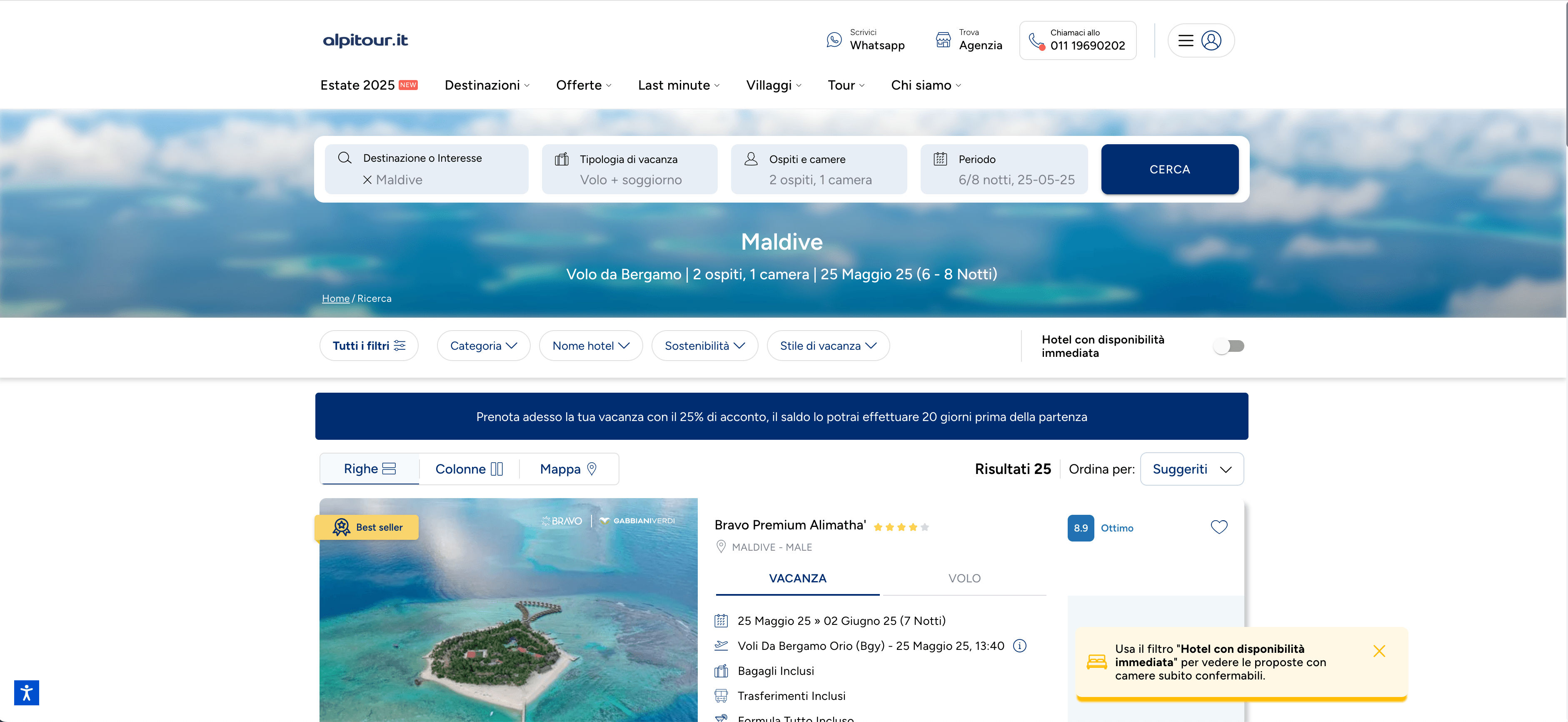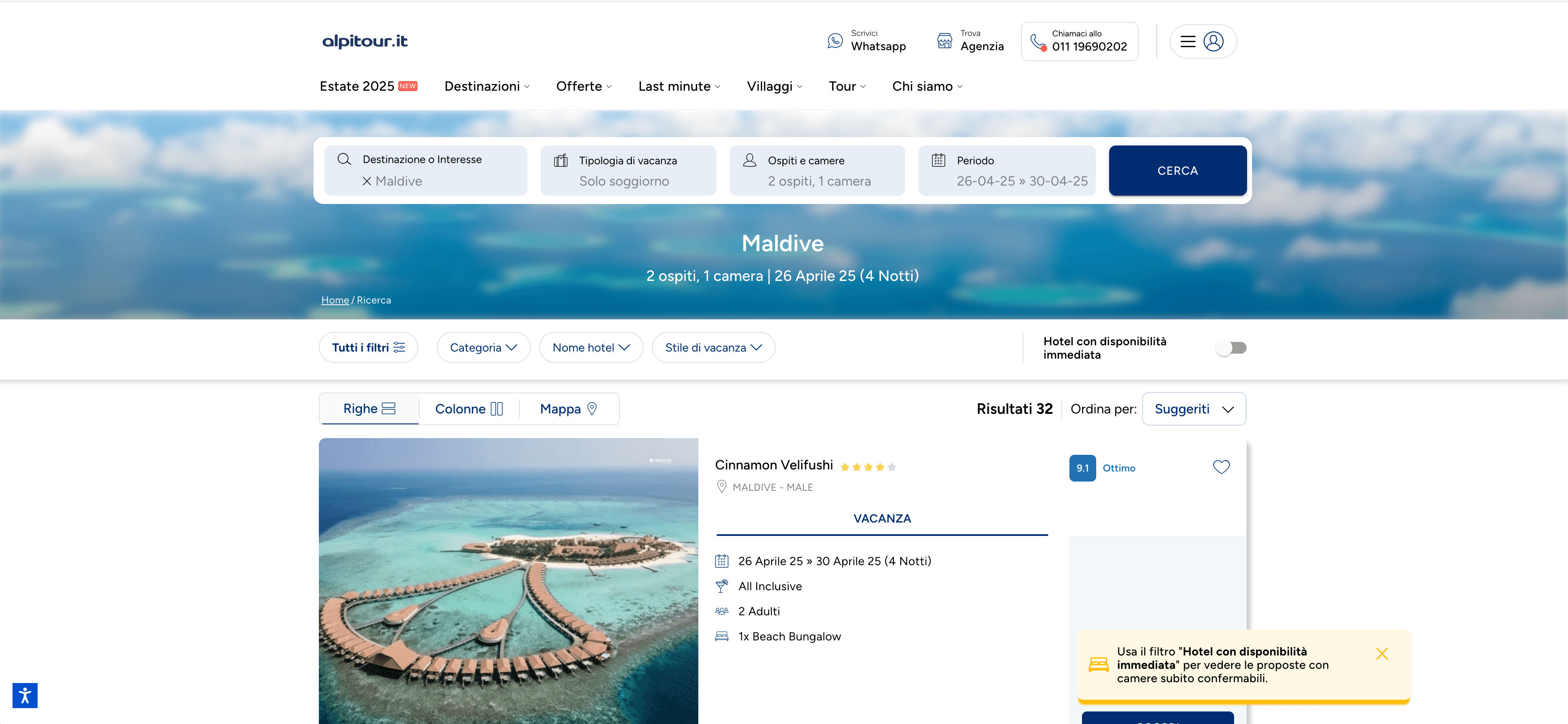 - Navigate to Alpitour Hotel or Flight Search Page: Open the relevant hotel or flight search result page.