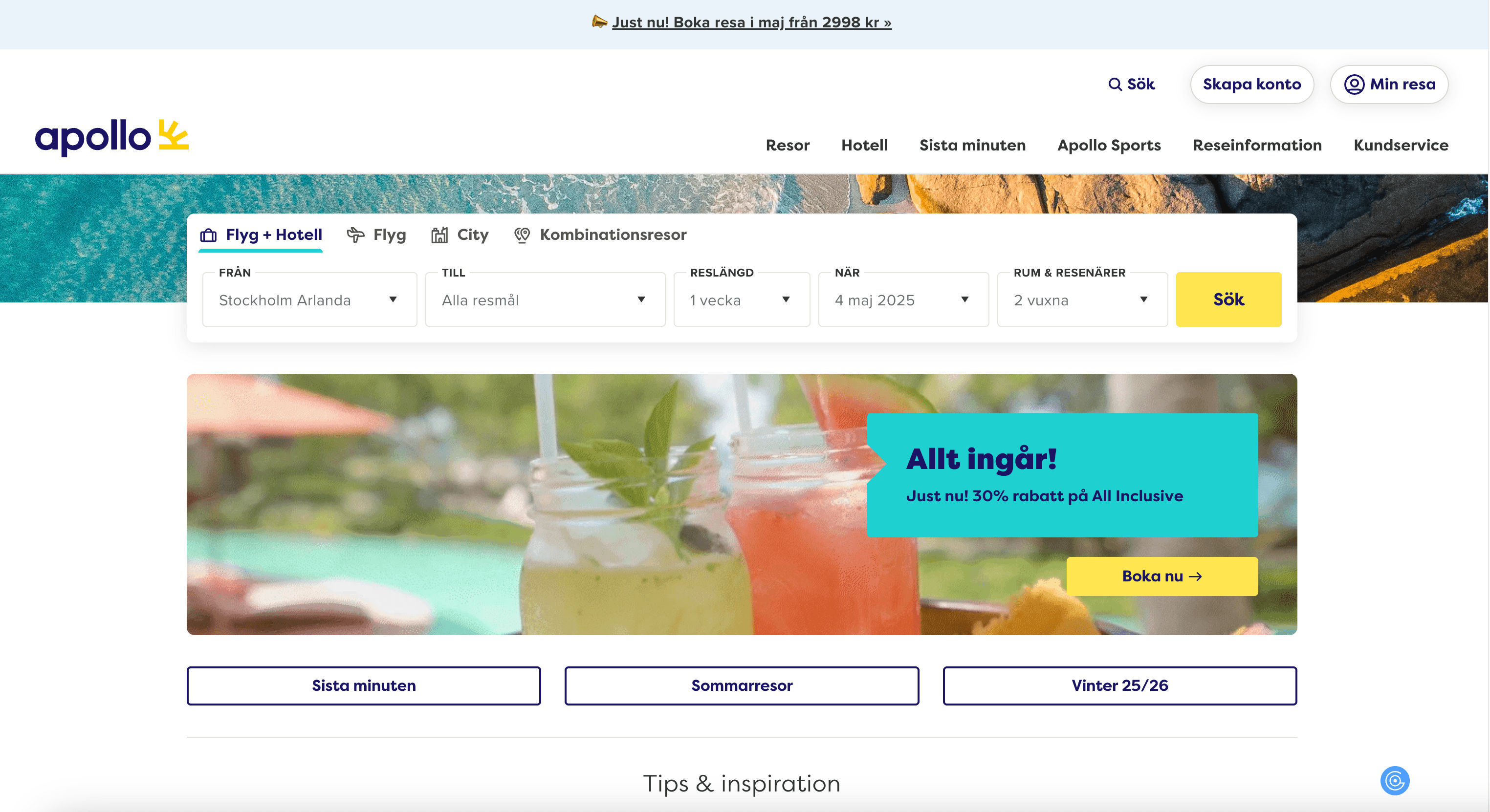 - Navigate to Apollo.se Flights or Accommodations Page: Go to the relevant search result page on Apollo.se.