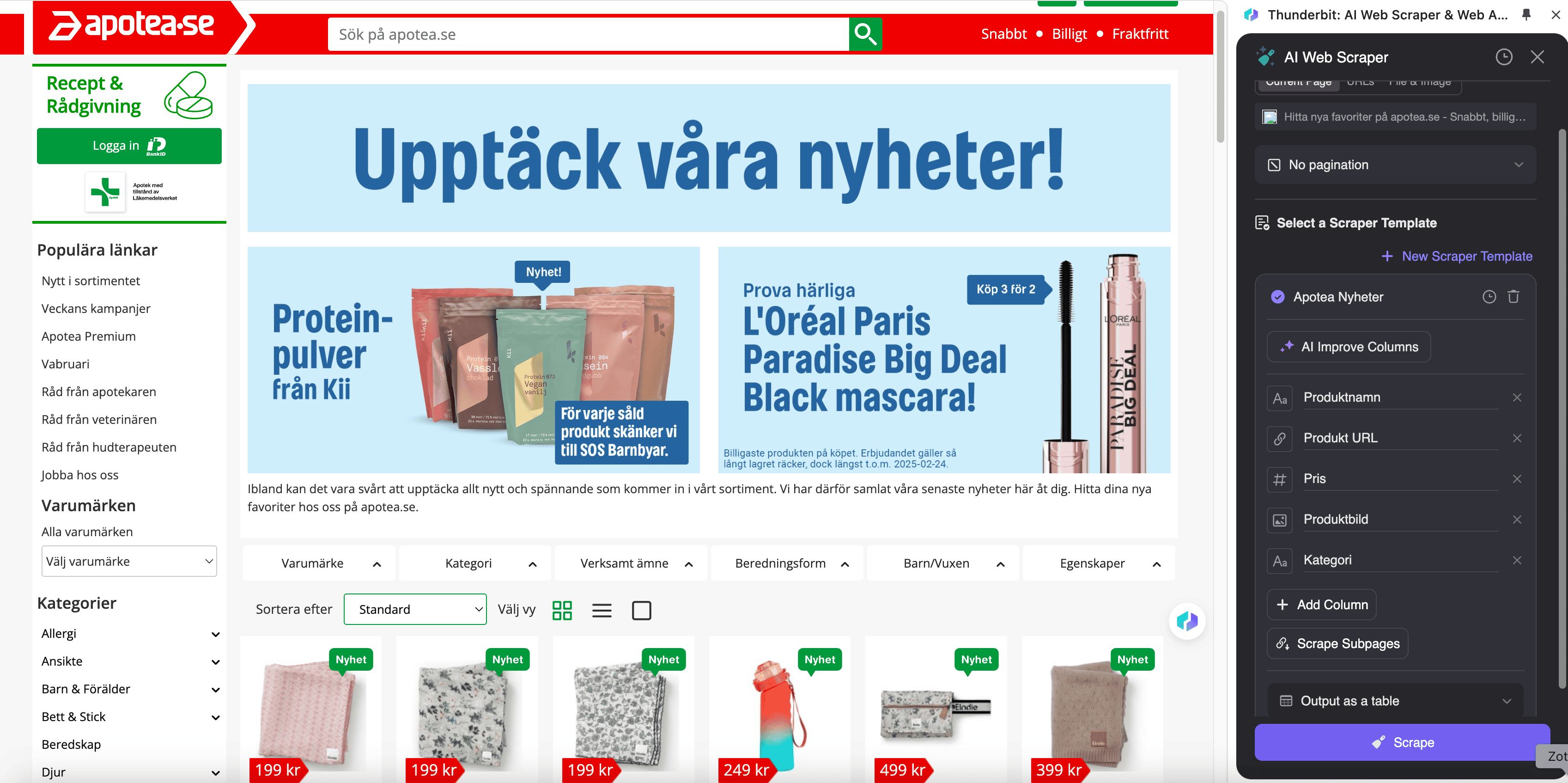 - Navigate to the Apotea Page: Go to the New Arrivals page or any product page you want to scrape.