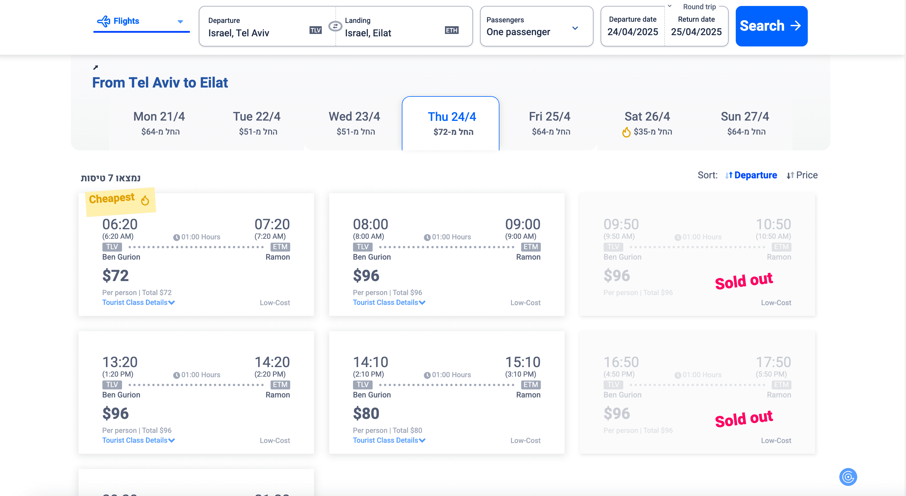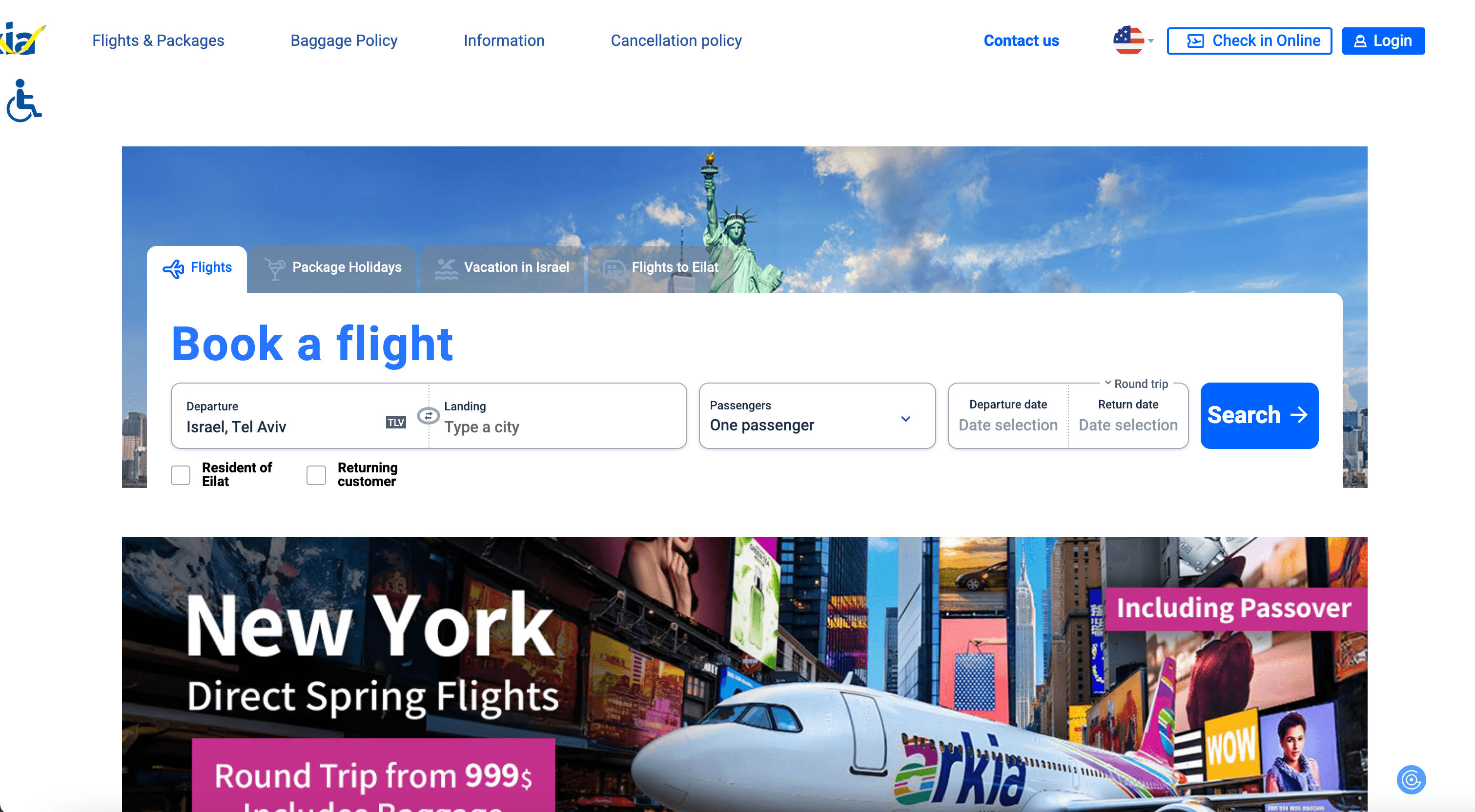 - Navigate to Arkia’s Flights or Hotels Search Results Page: Go to the relevant flights or hotels page.