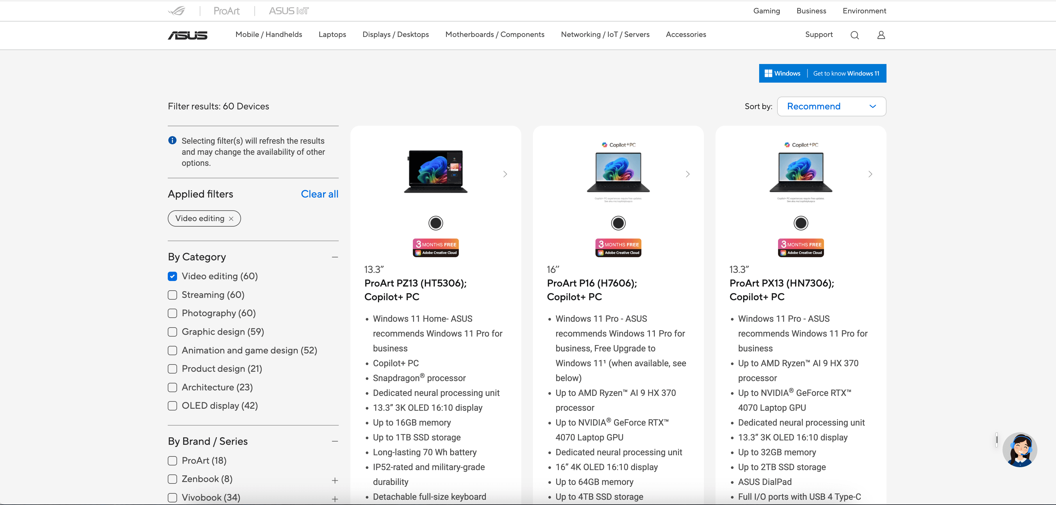 - Go to the destination page, for example: Asus Product Listing for Video Editing.