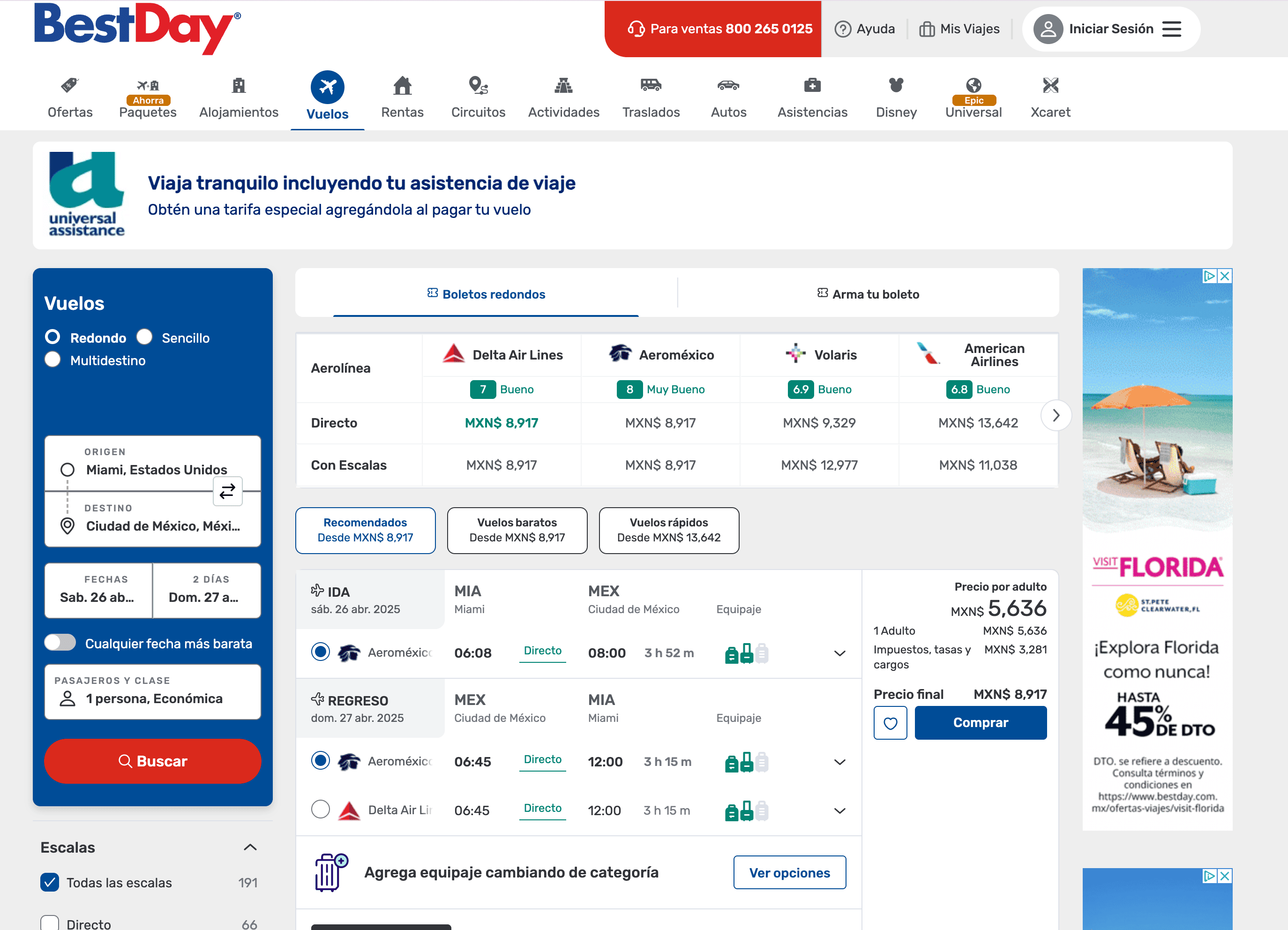 - Navigate to Hotel or Flight Search Result Page: Go to the Best Day page you want to scrape.