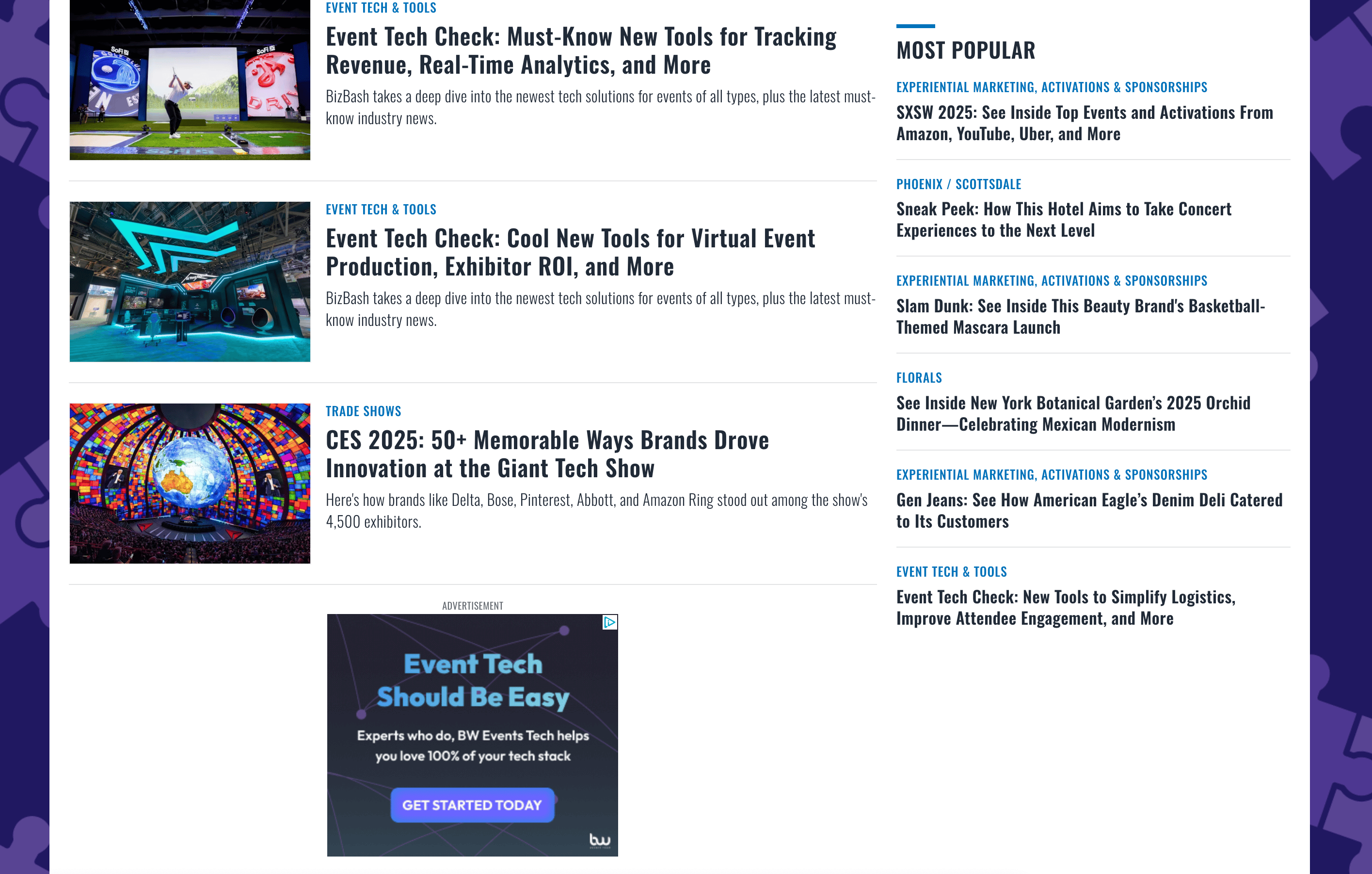 - Go to the destination page, for example: BizBash Event List.