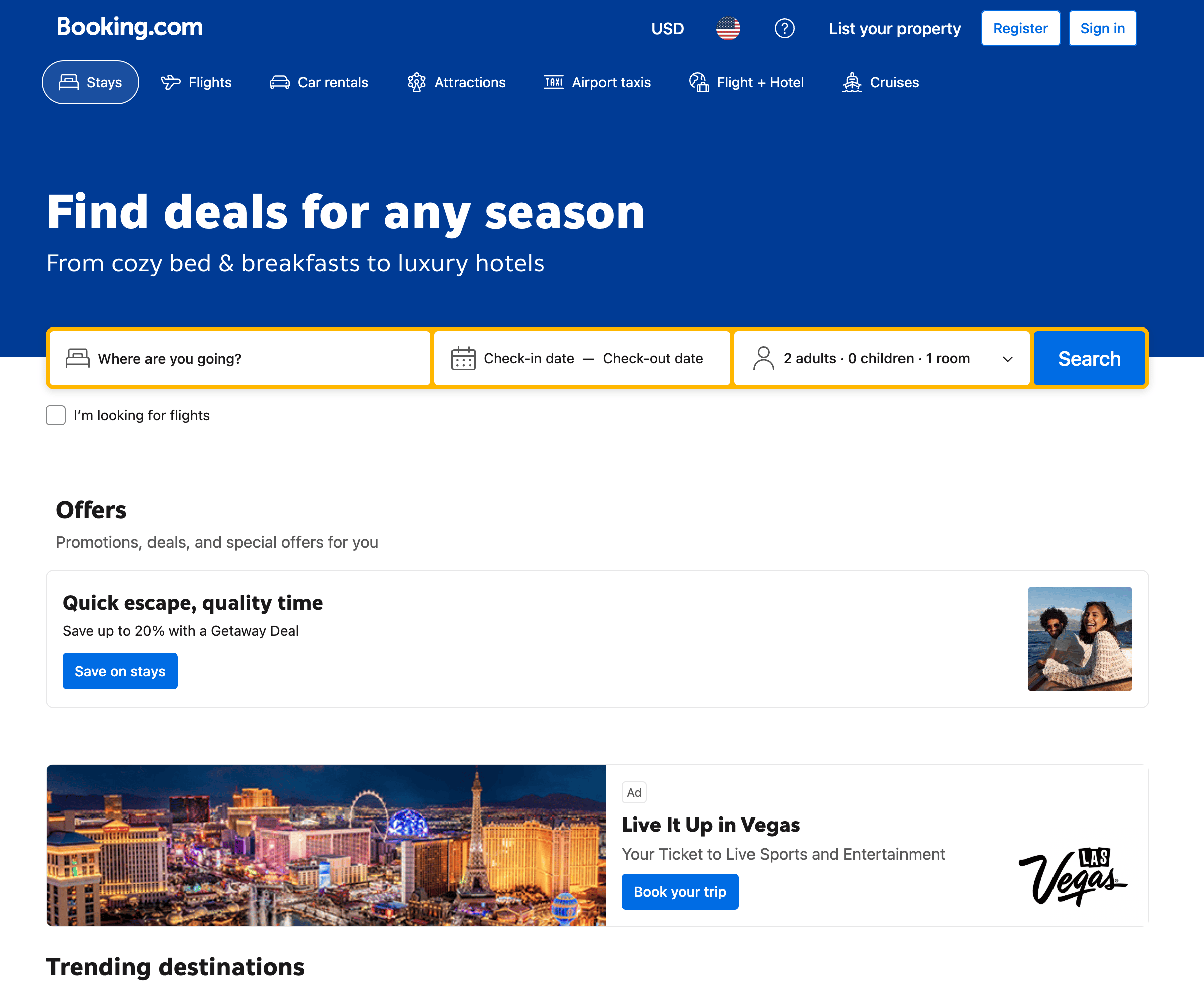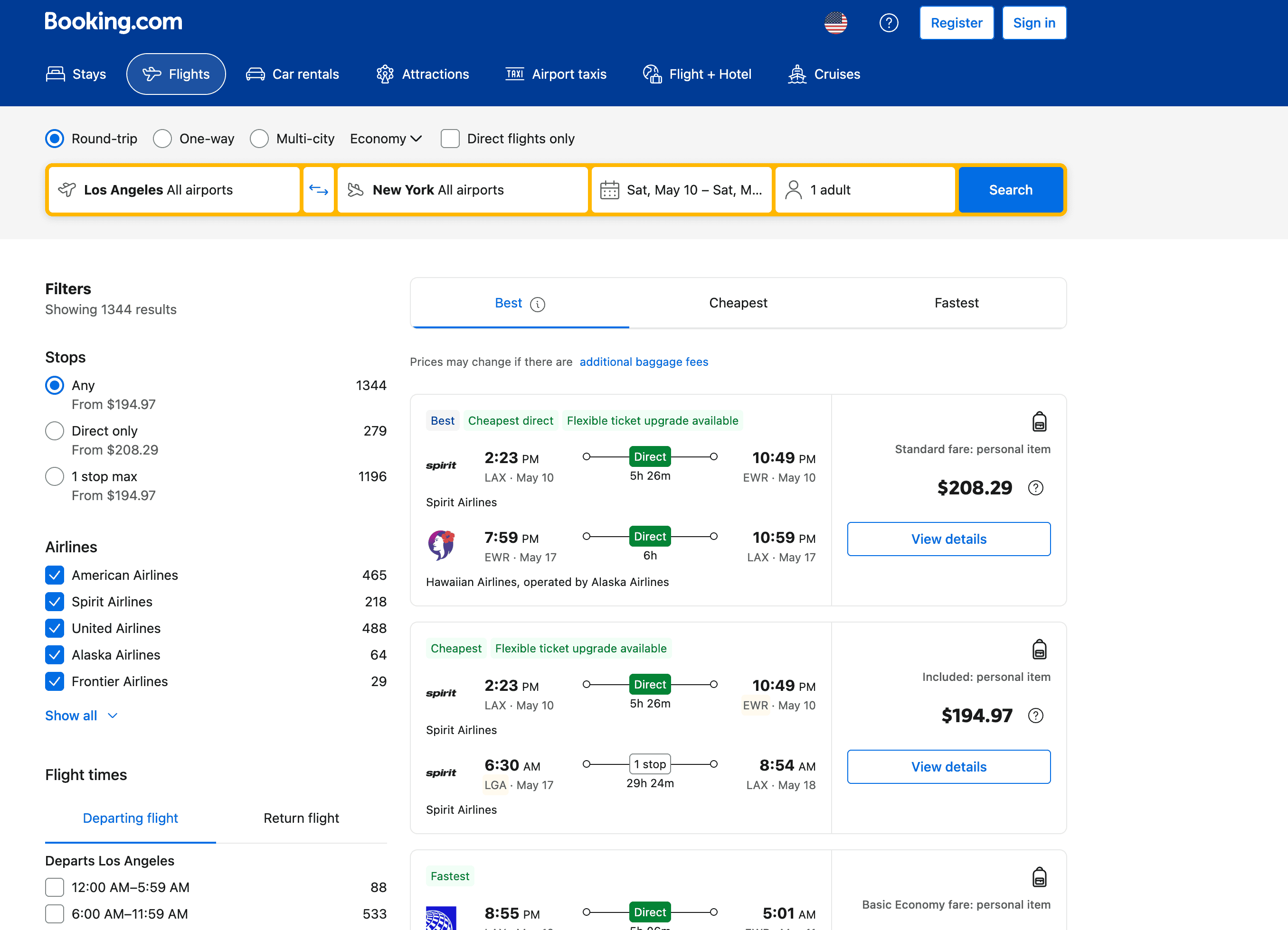 - Go to the destination page, for example: Booking.com Flight Search Result.