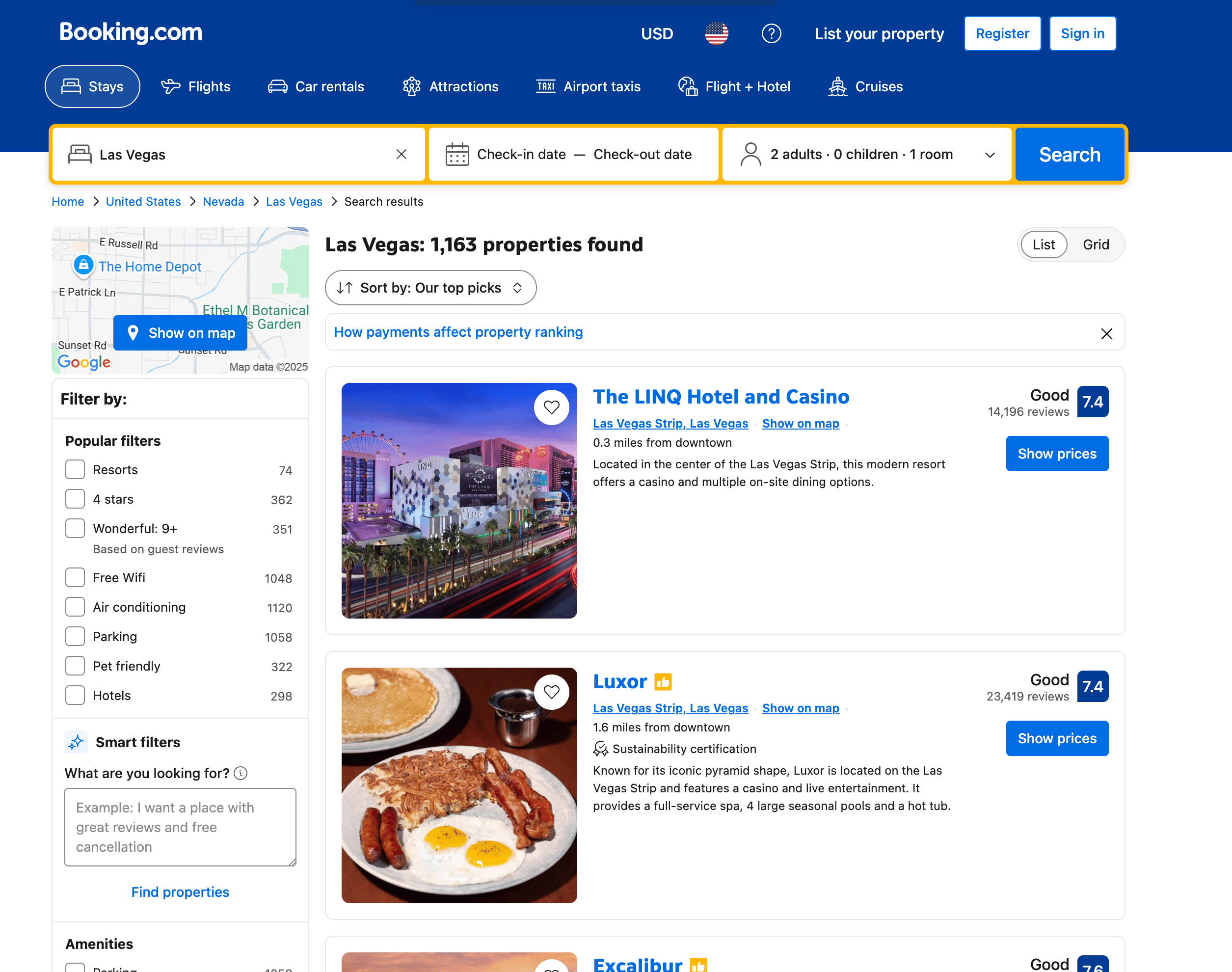 - Go to the destination page, for example: Booking.com Hotel Search Result.
