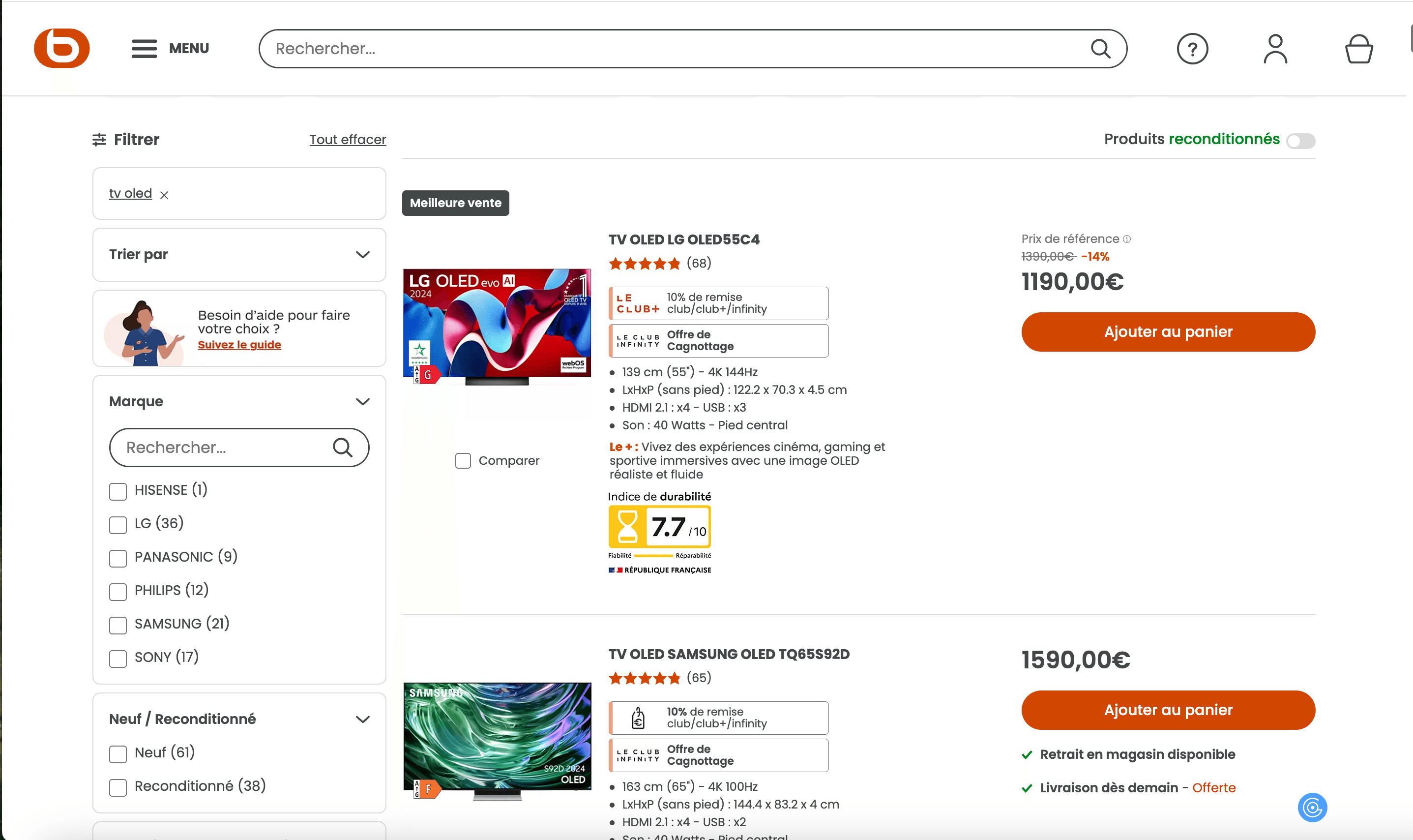 - Go to the destination page, for example: Boulanger TV OLED Listings.