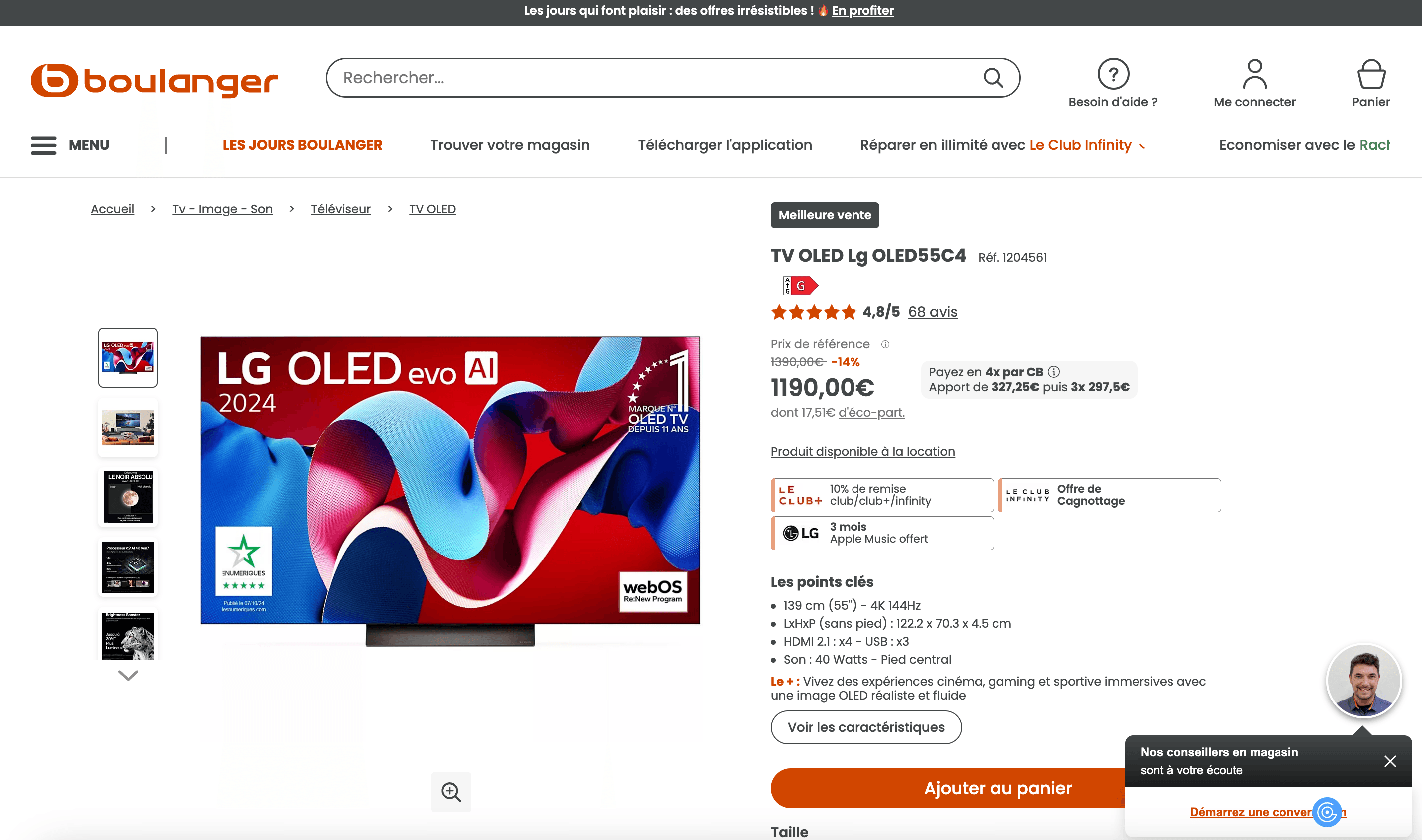 - Navigate to Boulanger Listings or Product Detail Page: Go to any Boulanger category or product page.