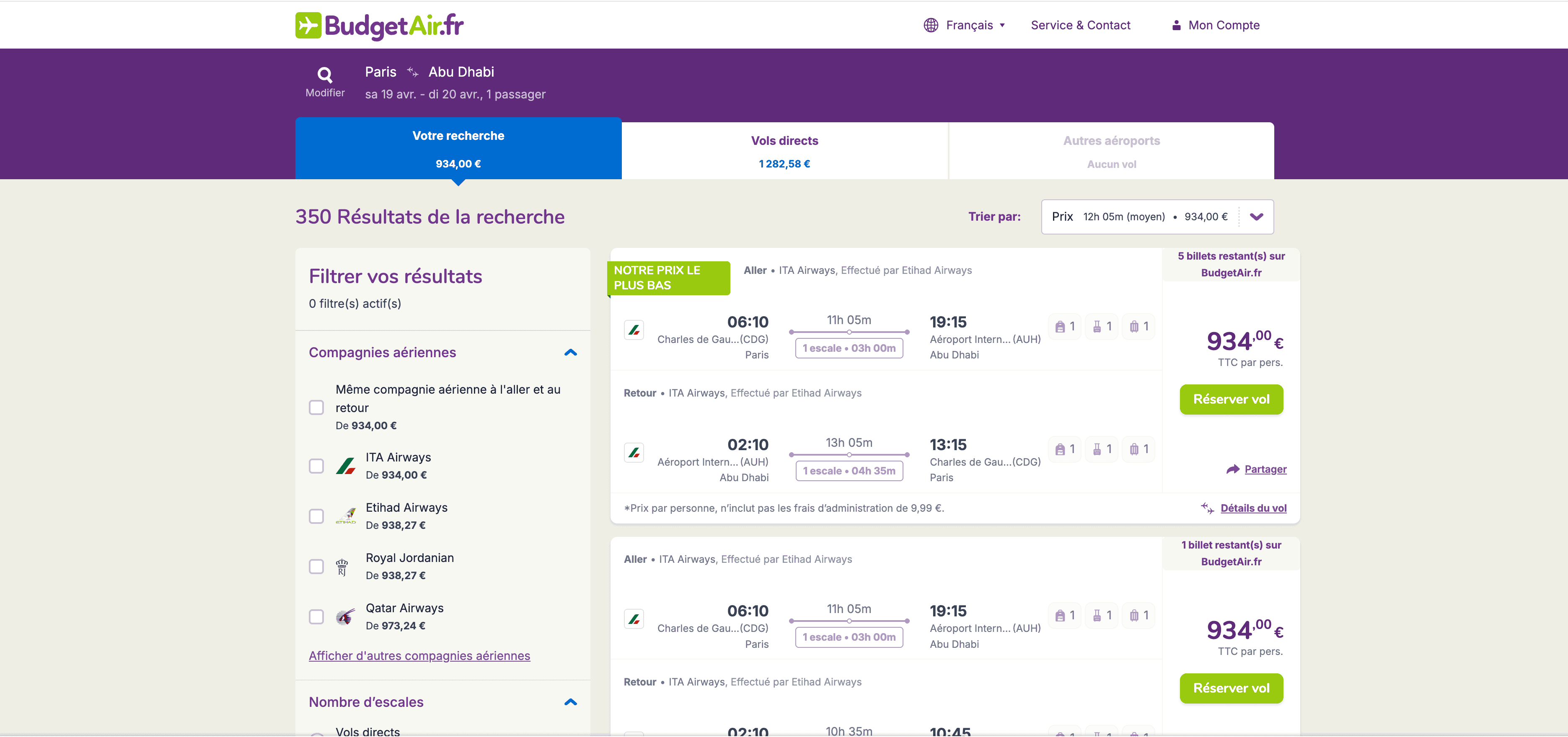 - Go to the destination page, for example: BudgetAir Flight Search Result Page.