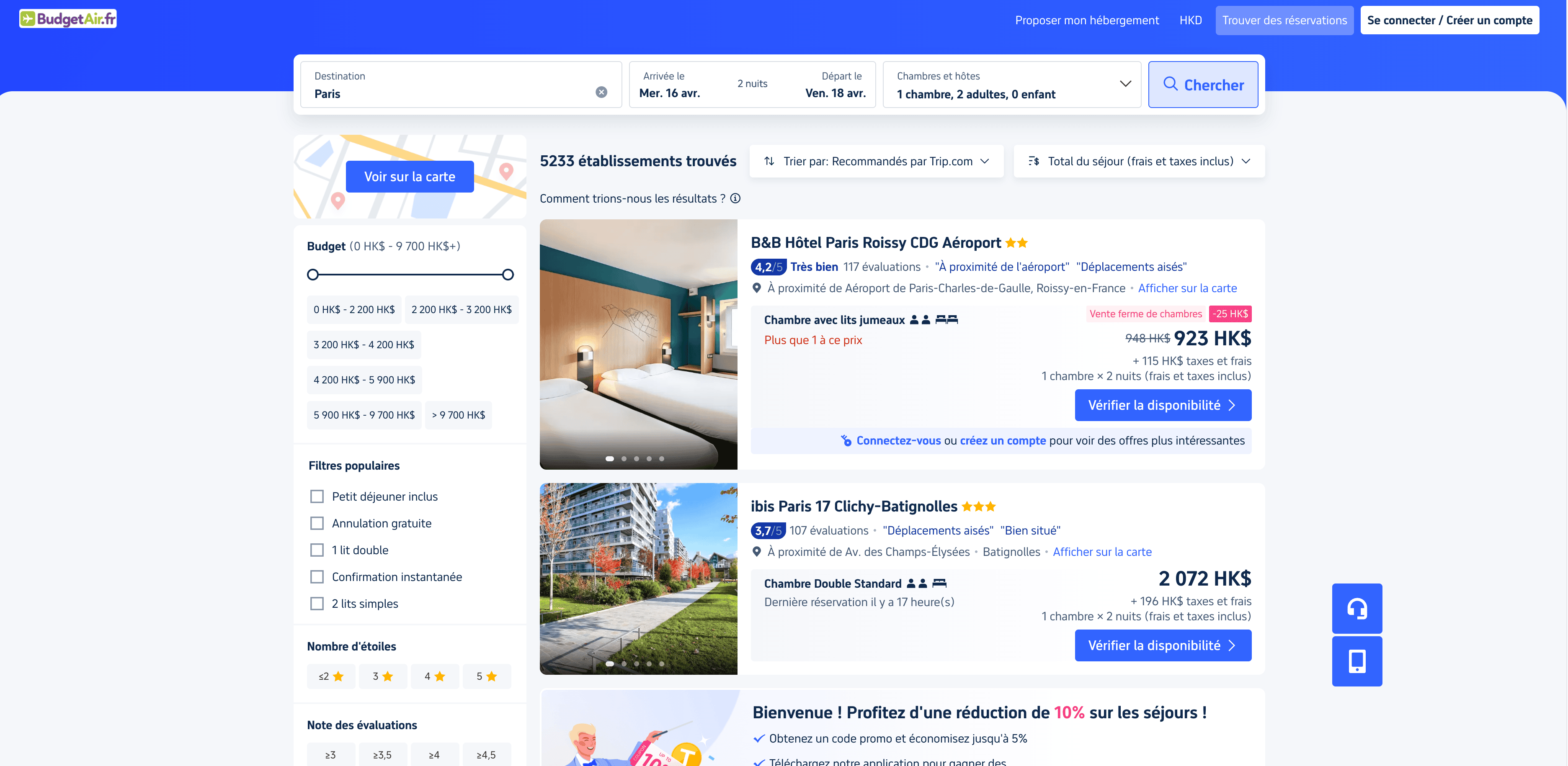 - Go to the destination page, for example: BudgetAir Hotel Search Result Page.