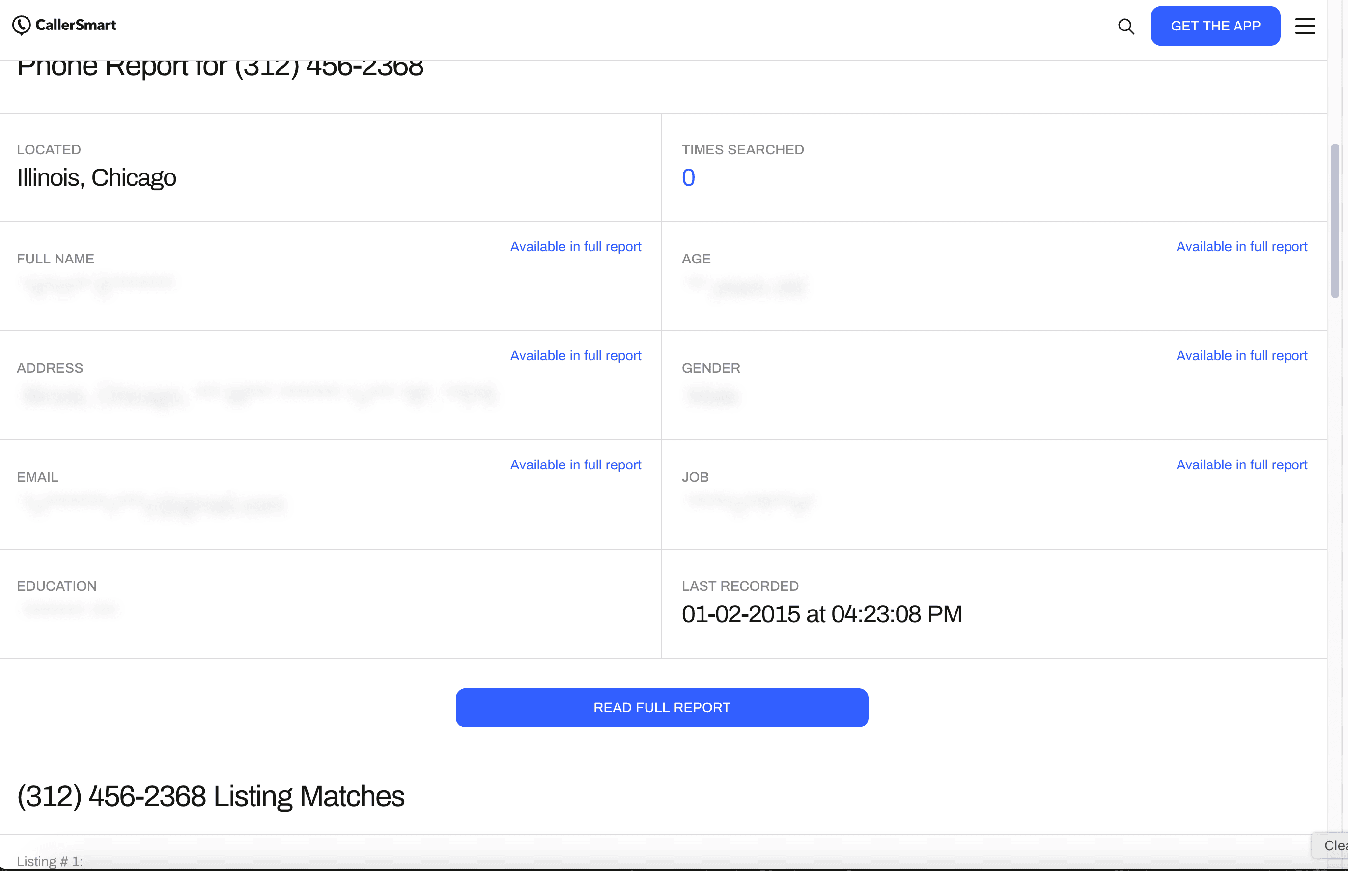 - Go to the destination page, for example: CallerSmart number search result.