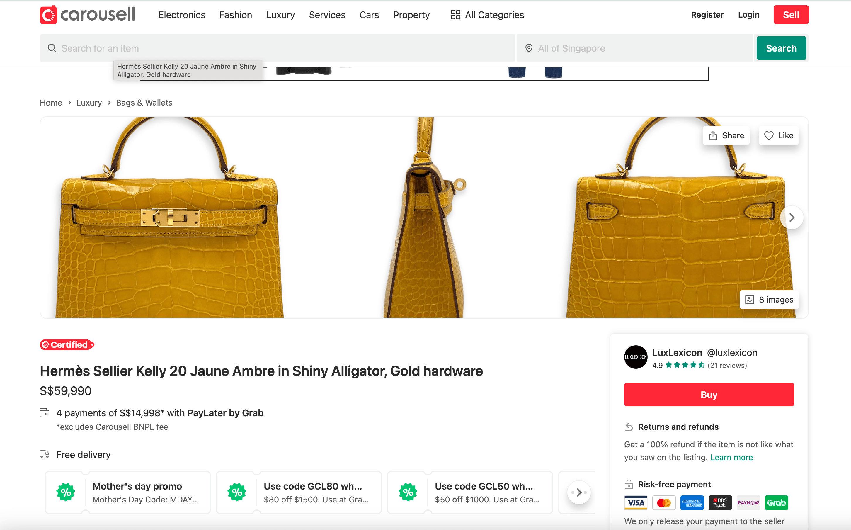 - Go to the destination page, for example: Carousell Luxury Bags & Wallets.