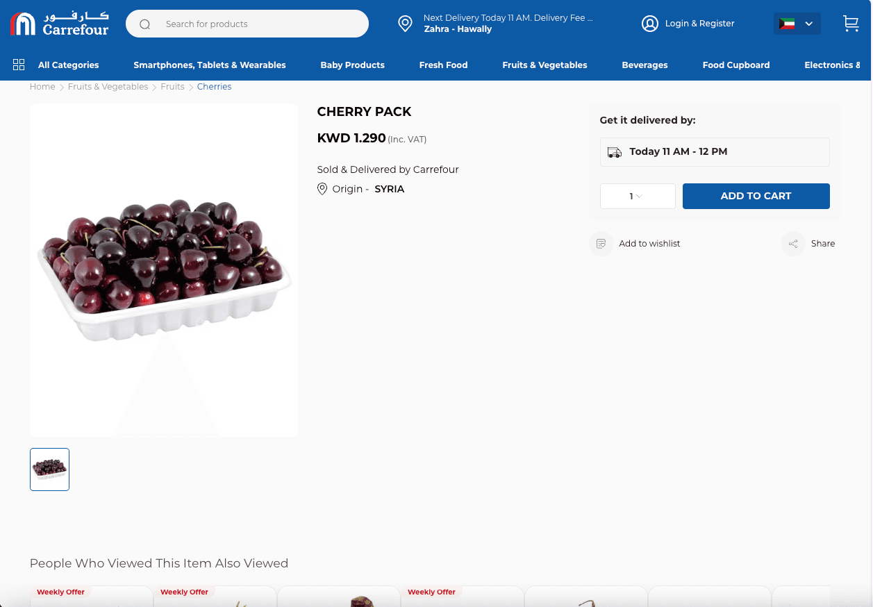 - Navigate to Carrefour Product Listing or Details Page: Go to any Carrefour Kuwait product listing or product detail page.