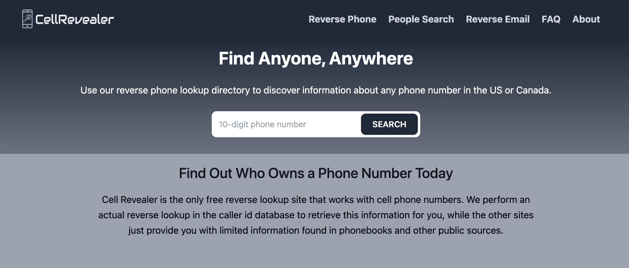 - Go to the destination page, for example: CellRevealer Phone Search.
