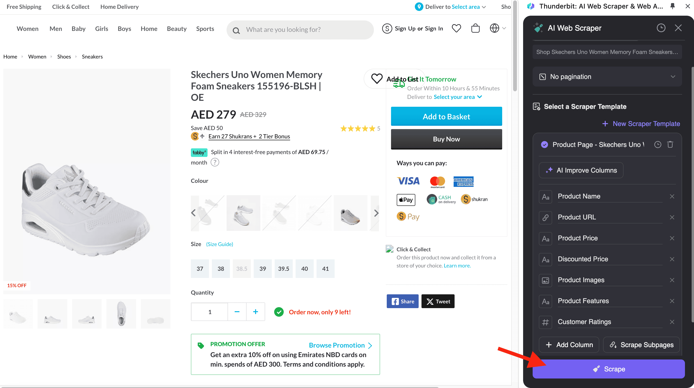 - Navigate to the Centrepoint Page: Go to the Women's Sneakers Listing Page or SKU Page you want to scrape.