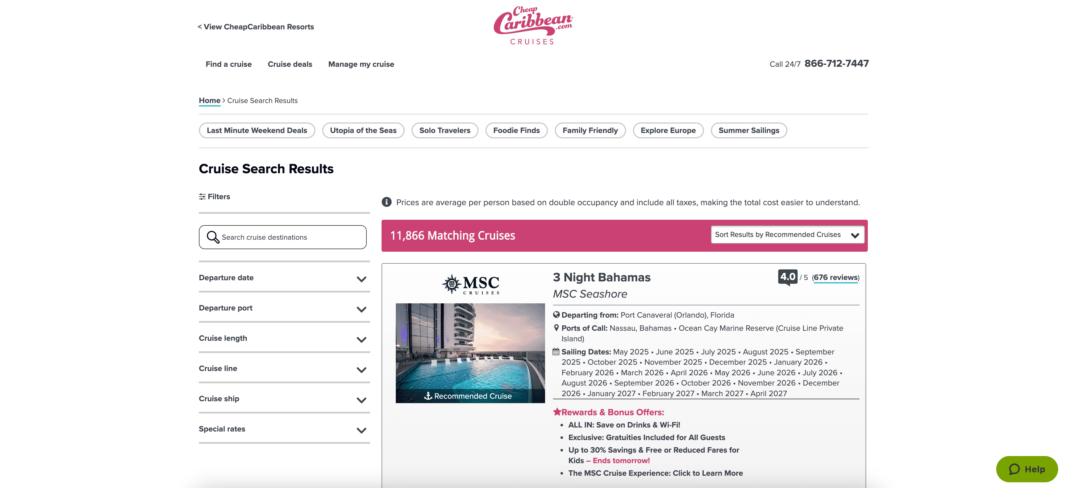 - Go to the destination page, for example: CheapCaribbean Cruise Search Result Page.