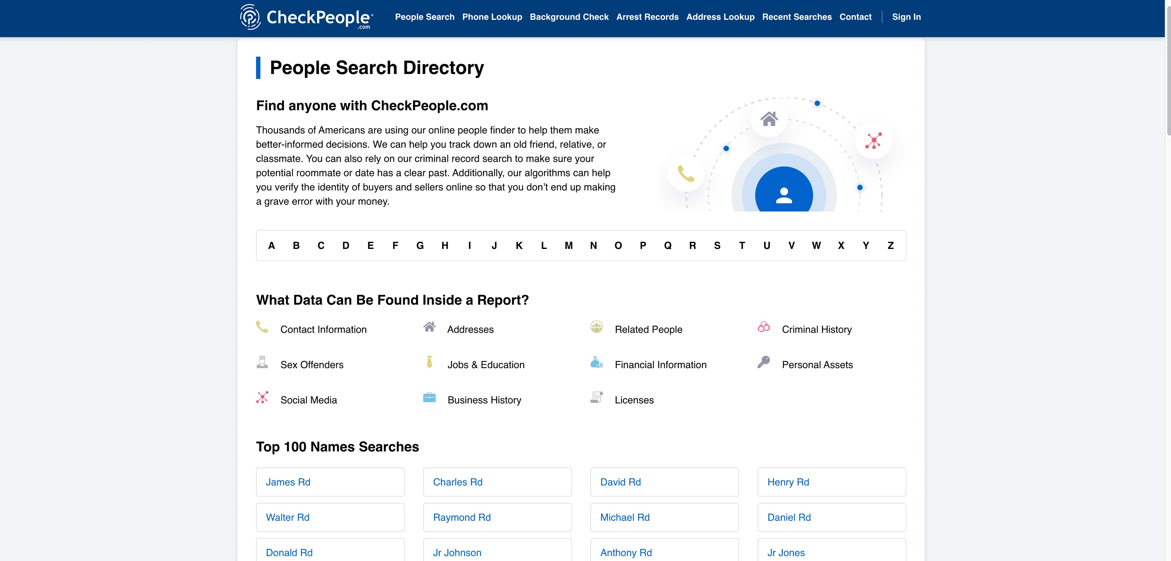 - Go to the destination page, for example: CheckPeople Directory Search.