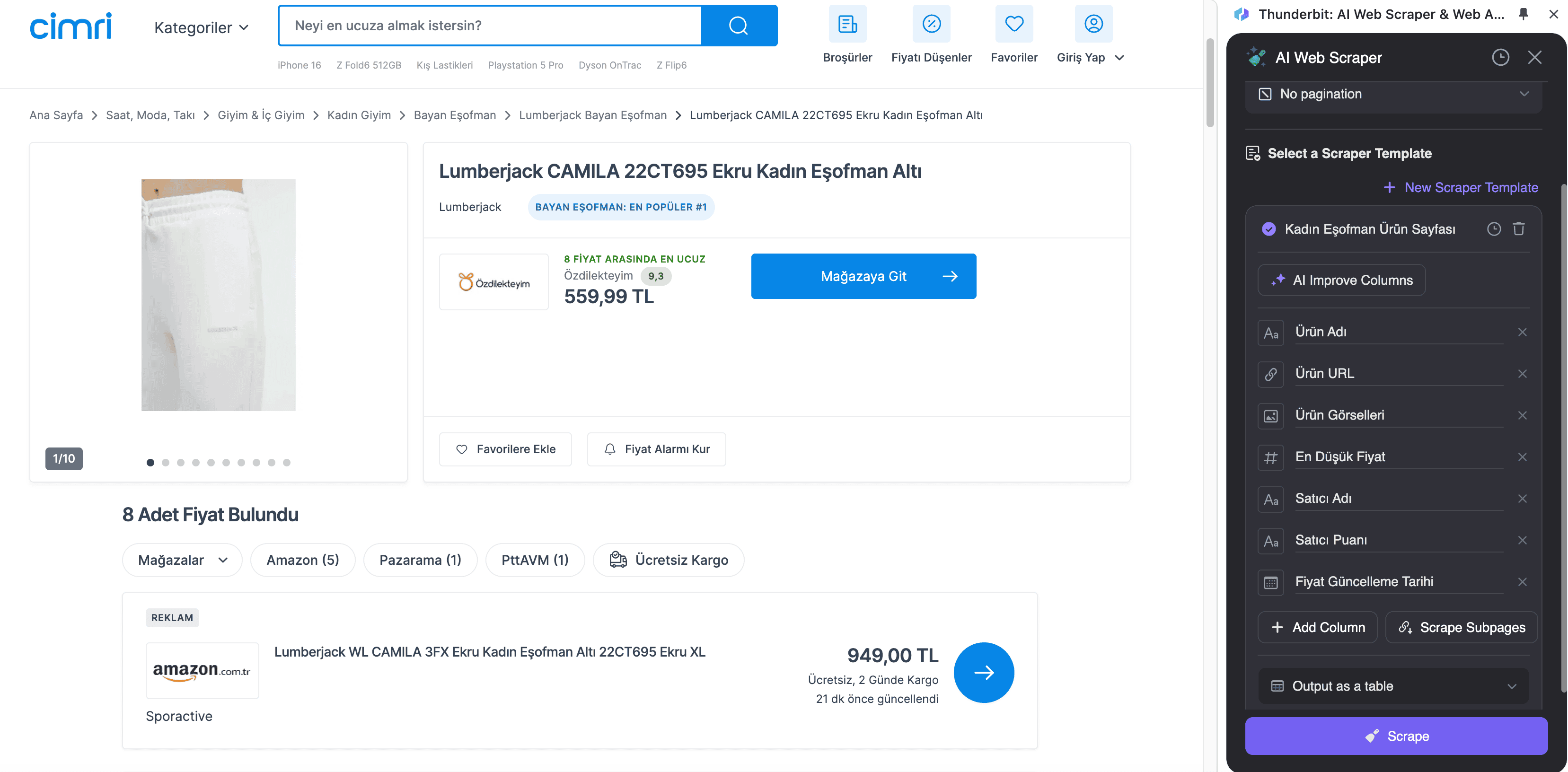 - Navigate to Cimri Pages: Go to the product listing or SKU page you want to scrape.