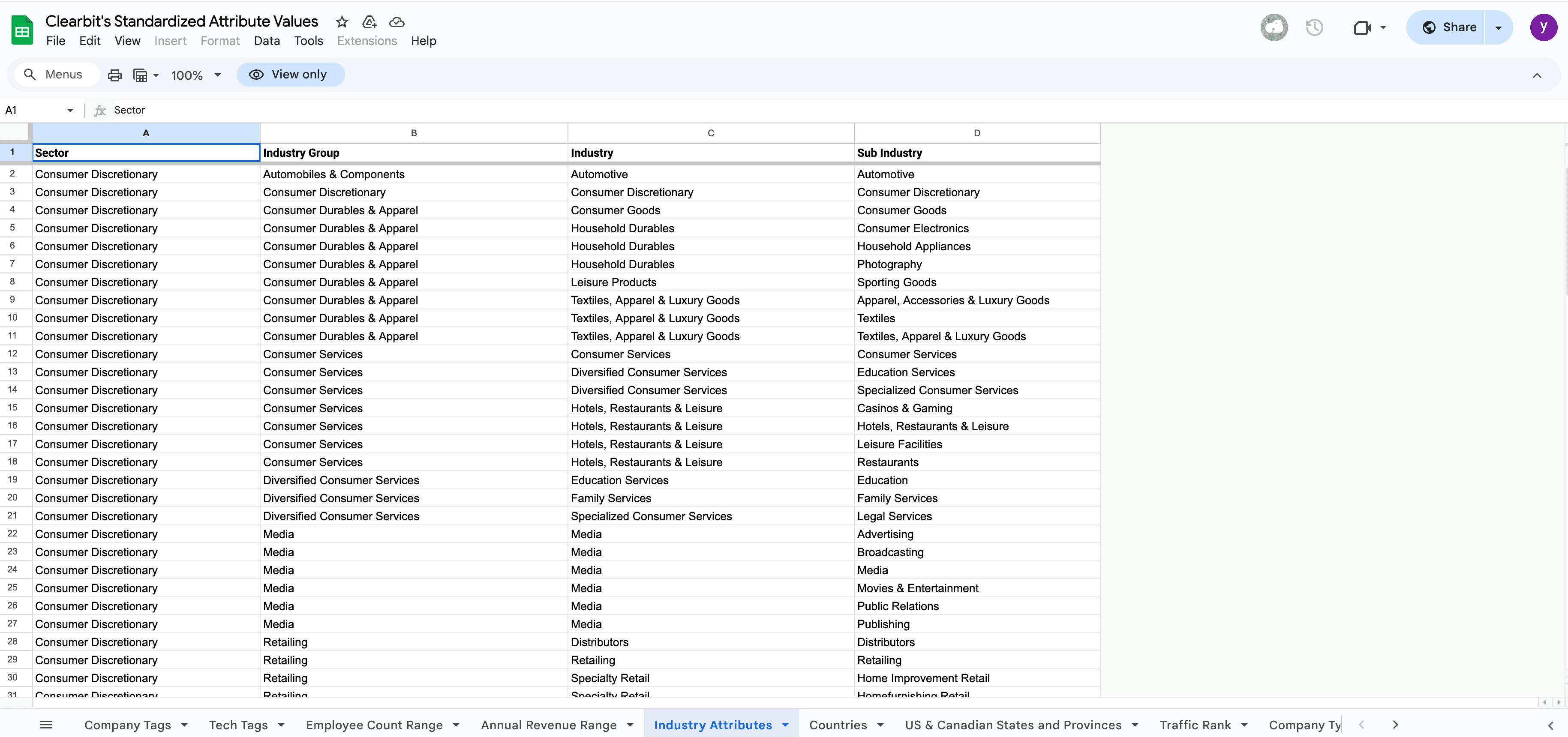 Scrape Clearbit's Standardized Attribute Values