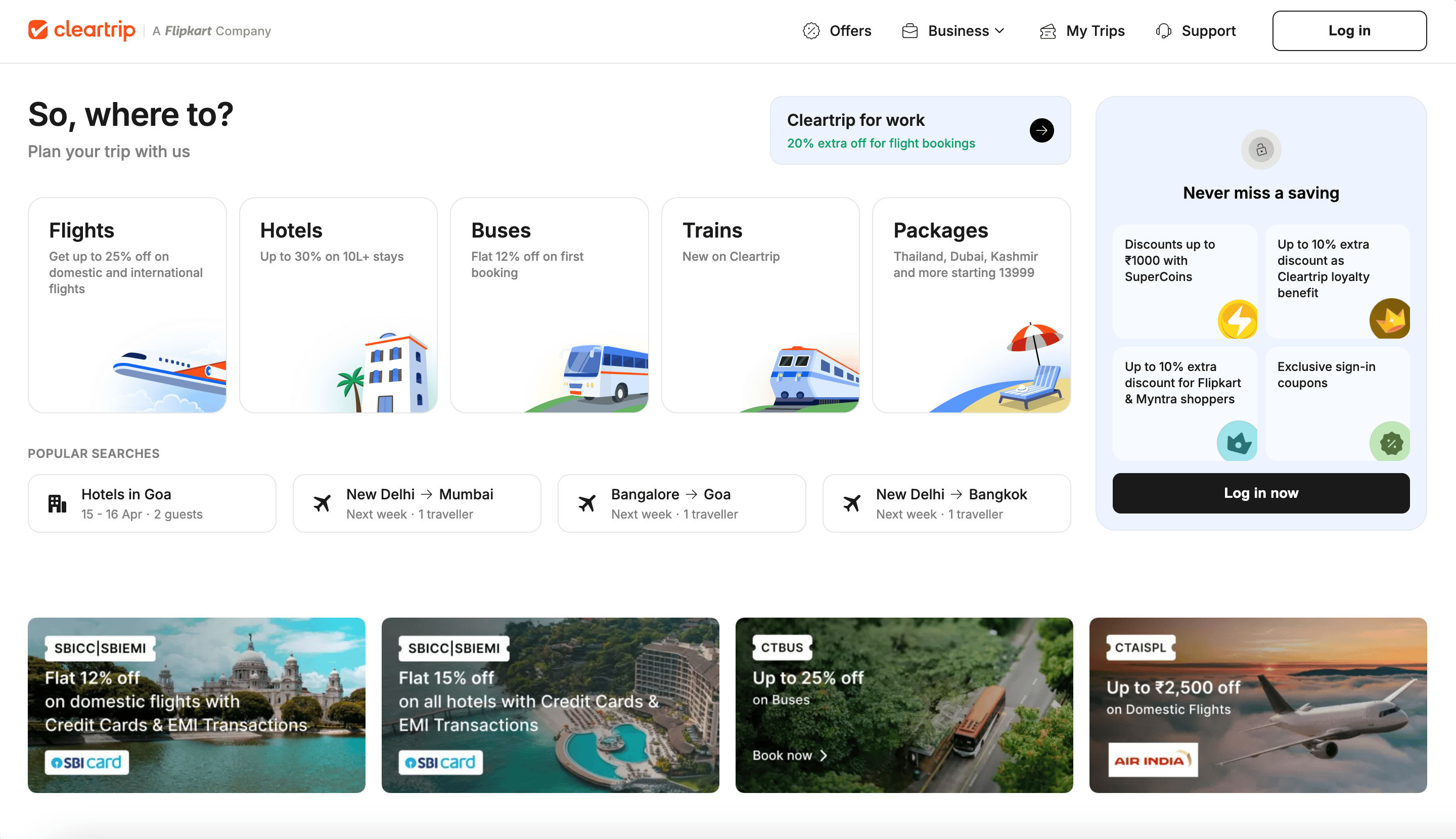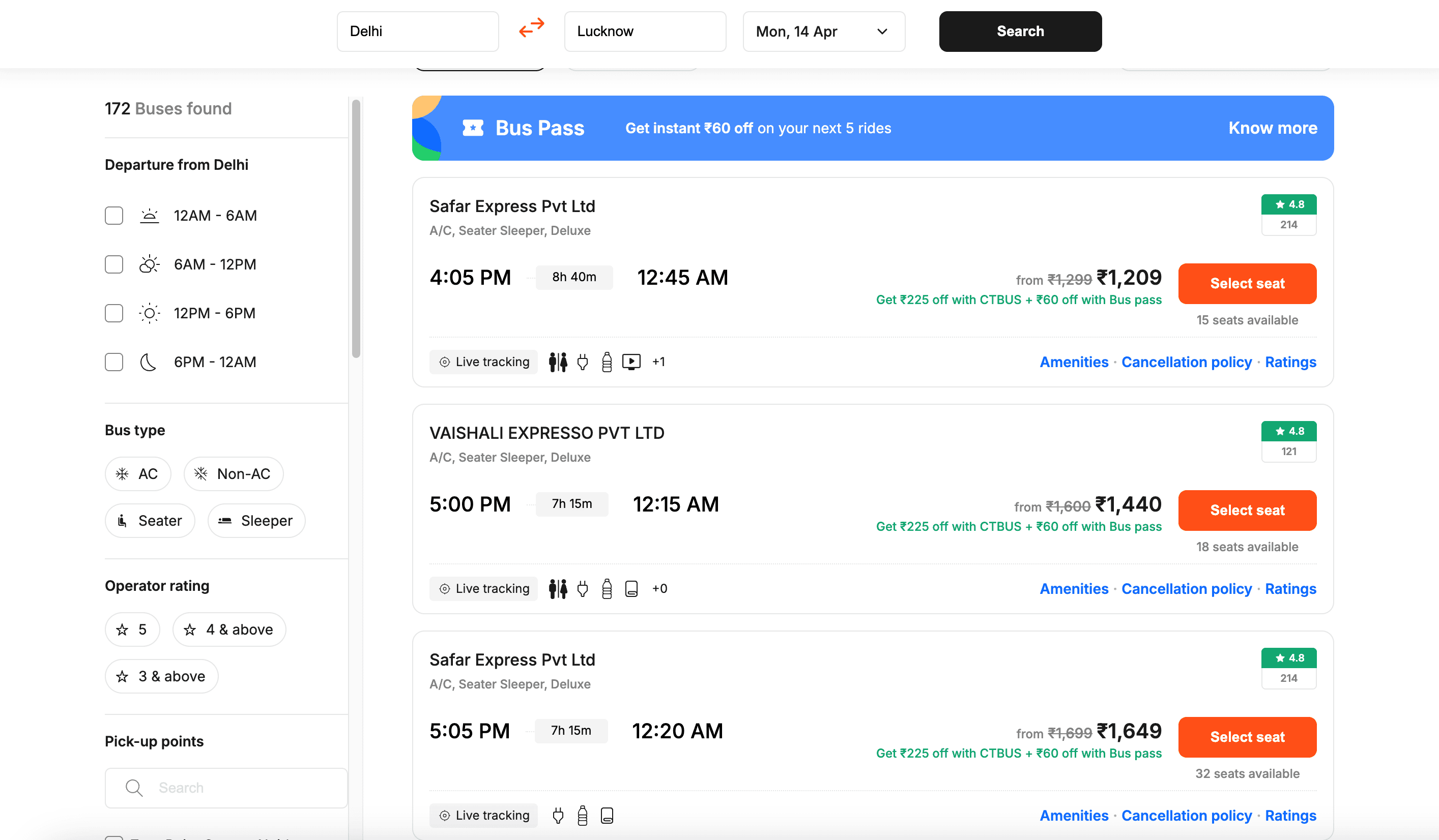 - Go to the destination page, for example: Cleartrip Bus Search Result.