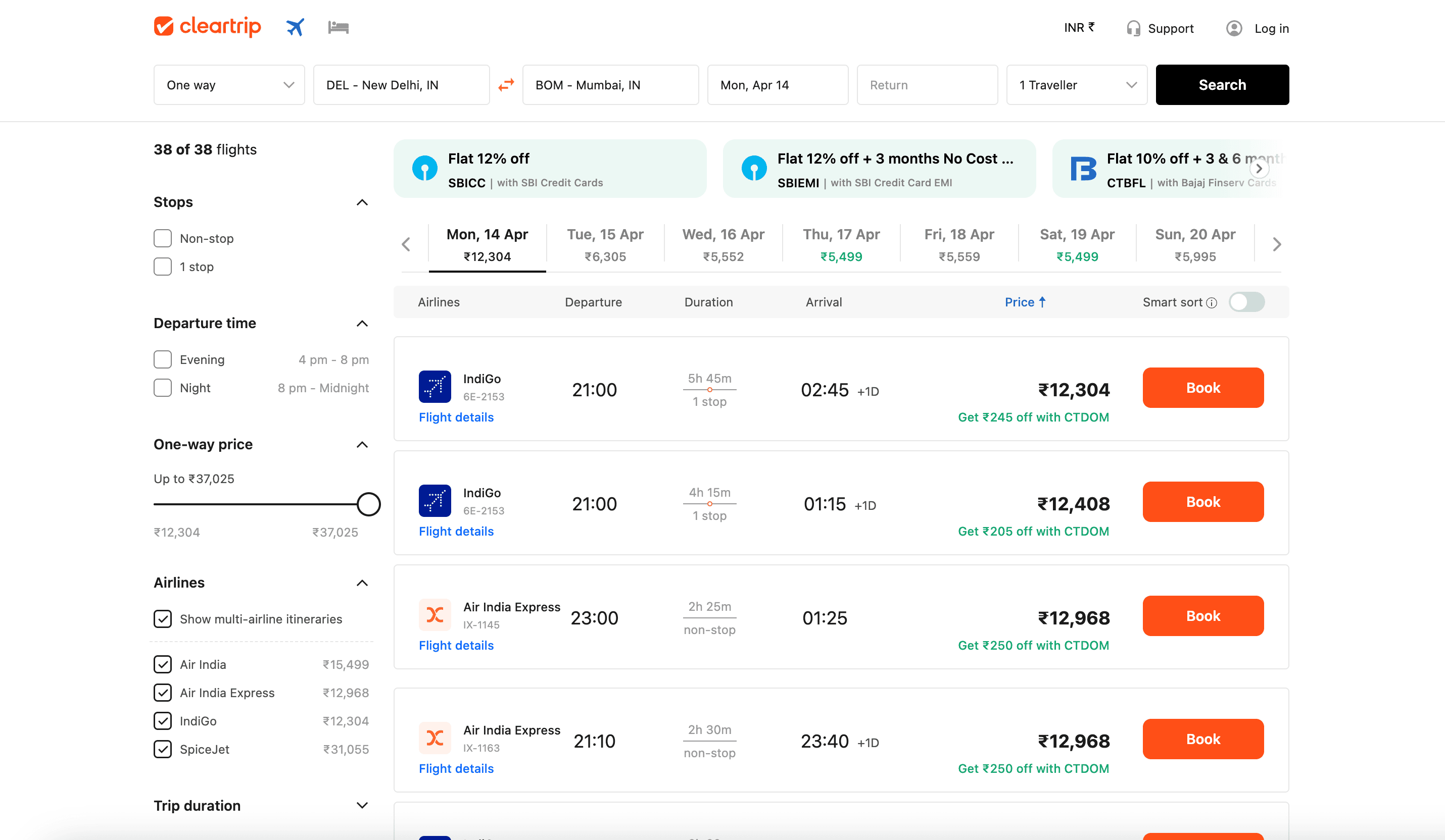 - Go to the destination page, for example: Cleartrip Flight Search Result.