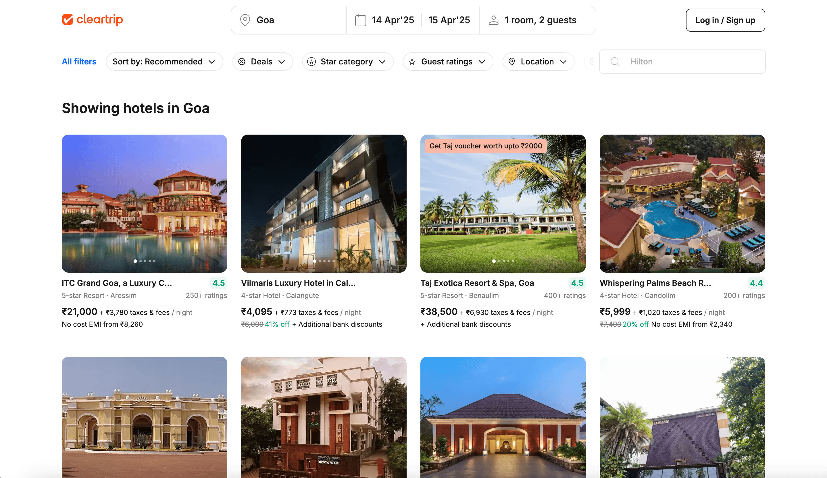 - Go to the destination page, for example: Cleartrip Hotel Search Result.