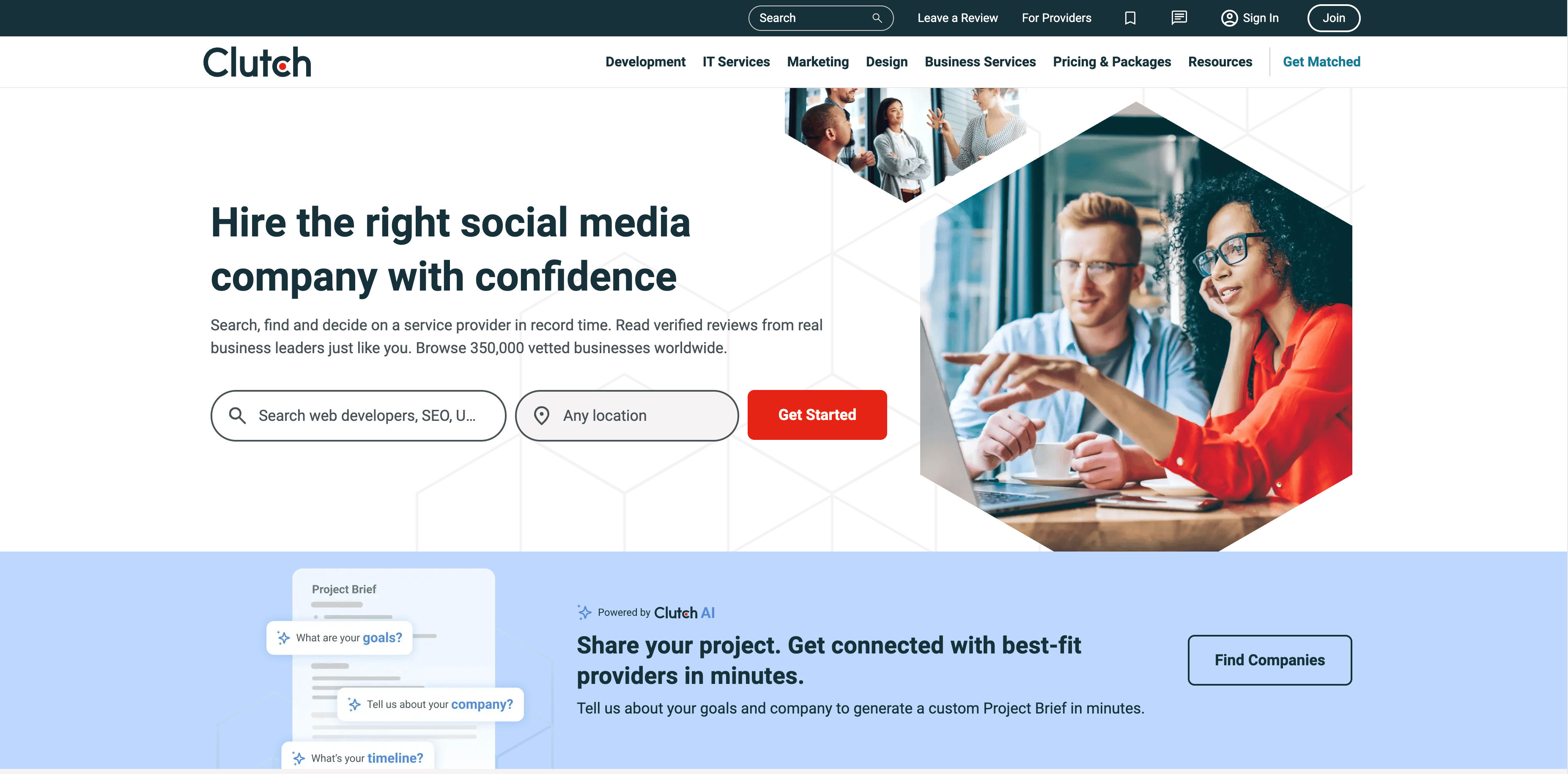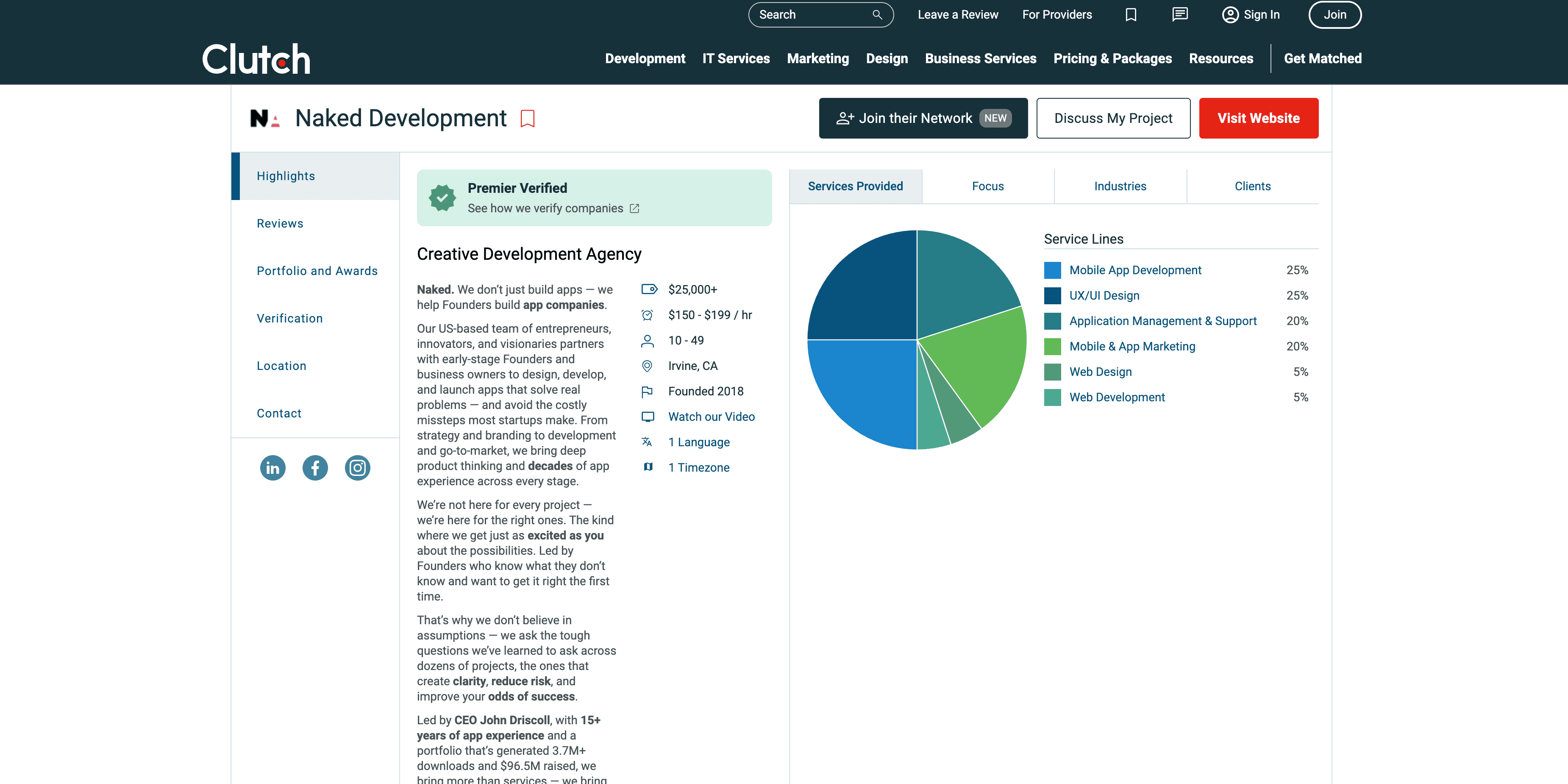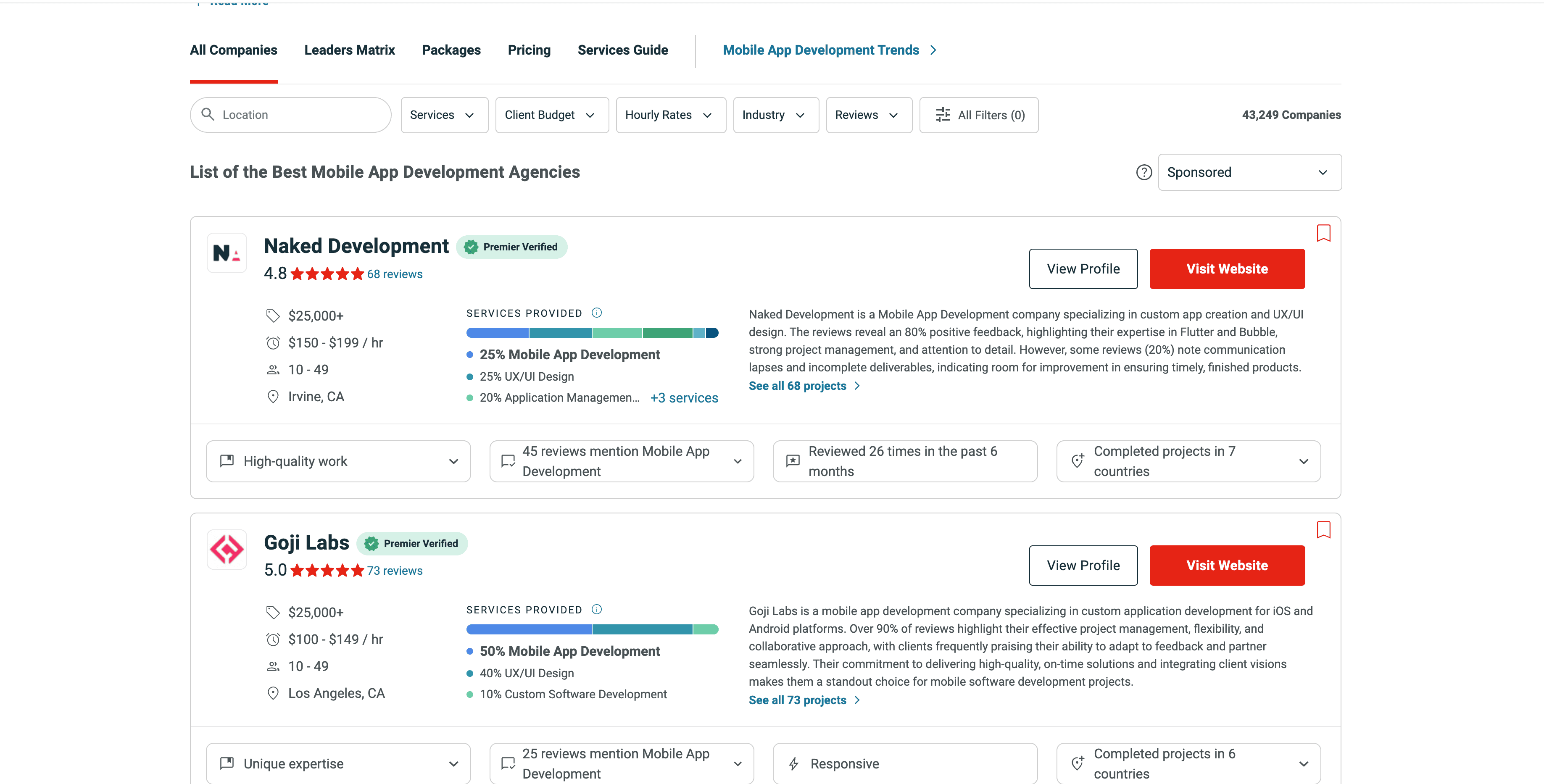 - Go to the destination page, for example: Clutch Mobile App Development Listing.