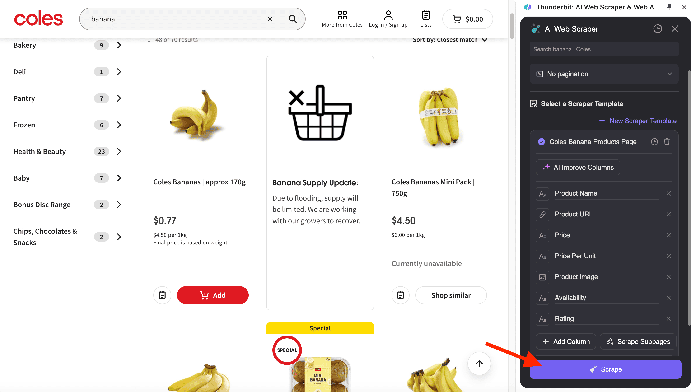 - Navigate to the Coles Page: Go to the Coles product listing or SKU page you want to scrape.