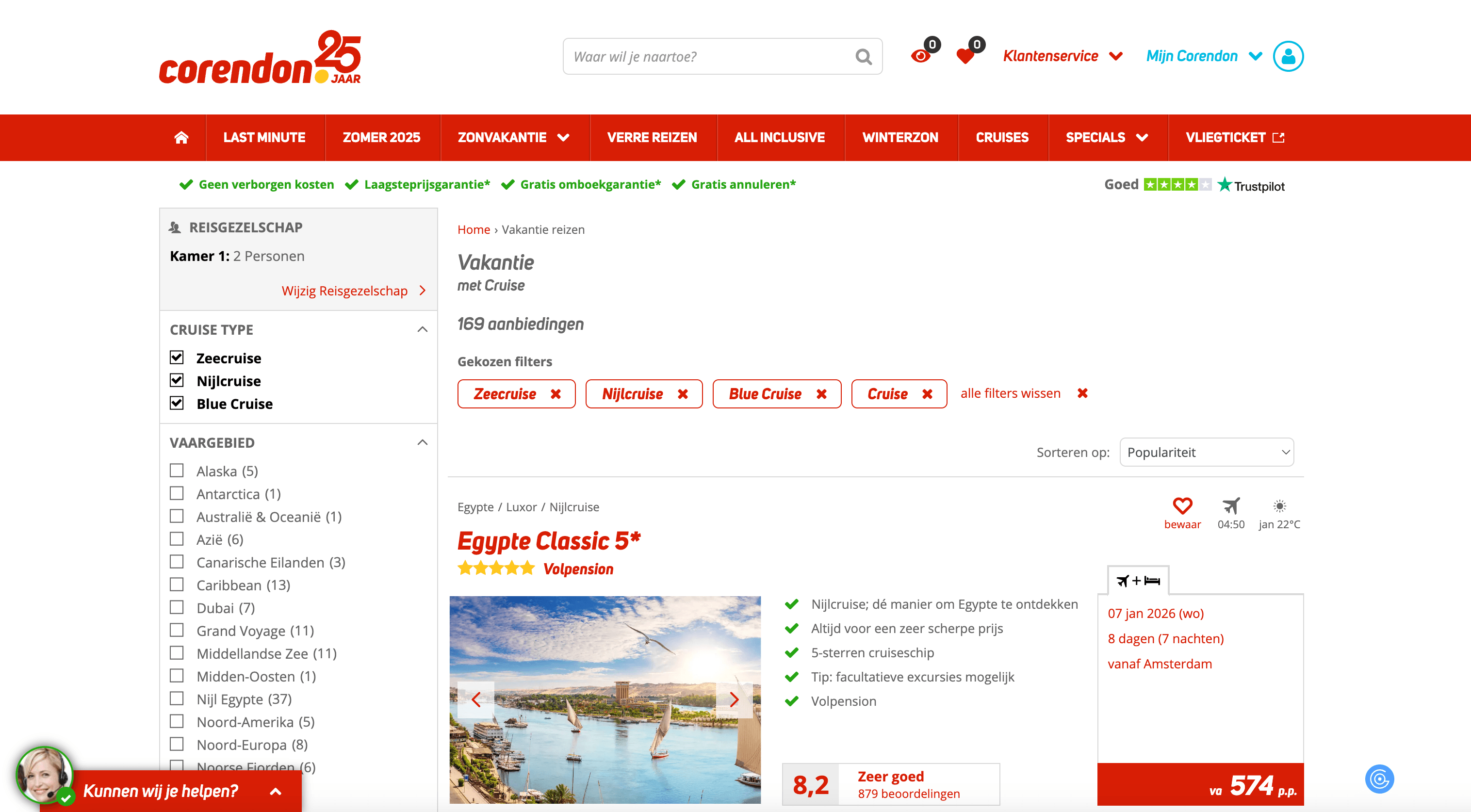 - Go to the destination page, for example: Corendon Cruises Search Result.