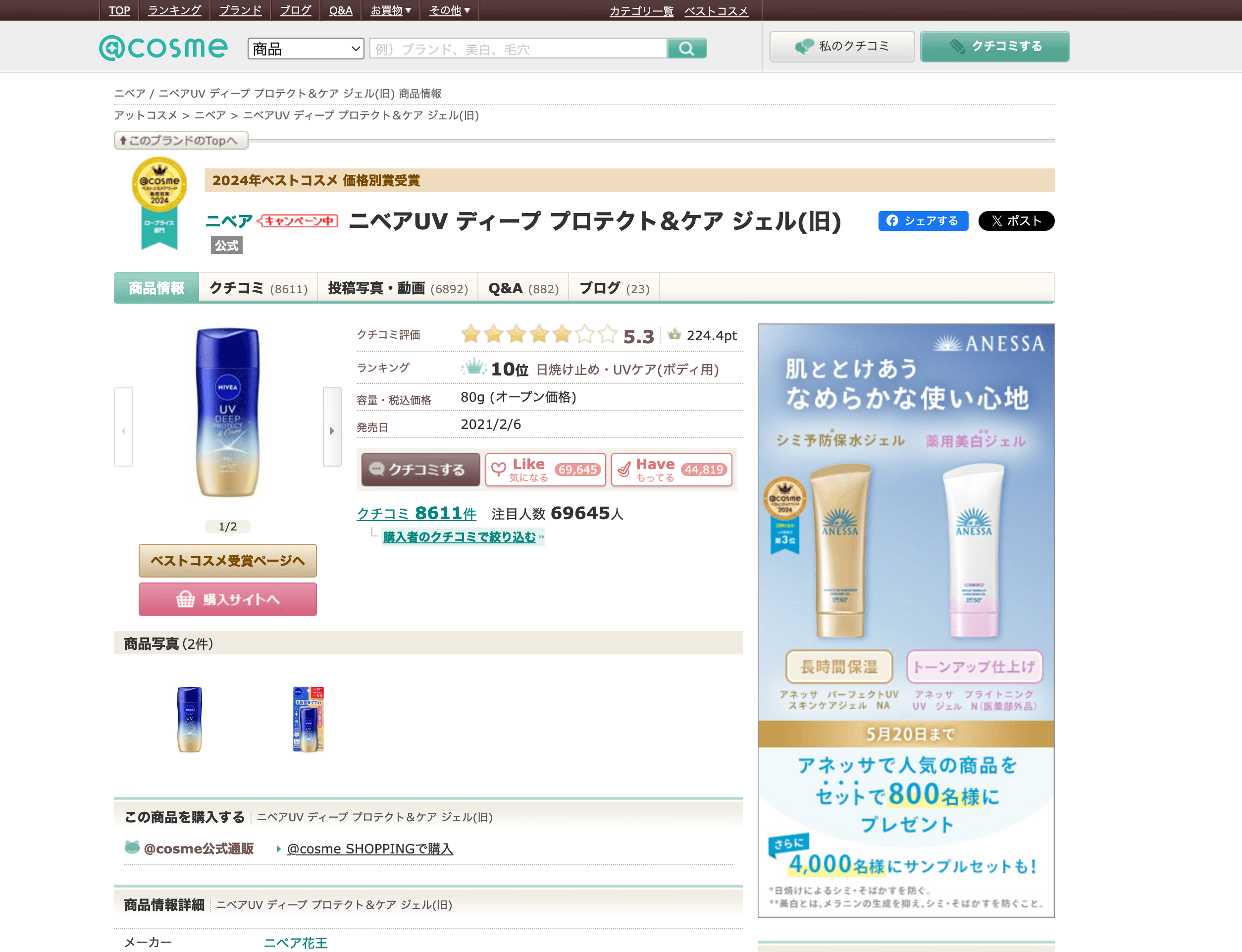 Dive deeper by extracting detailed information from a cosme product details page. This is ideal for collecting in-depth product specs, ingredient lists, and user feedback.