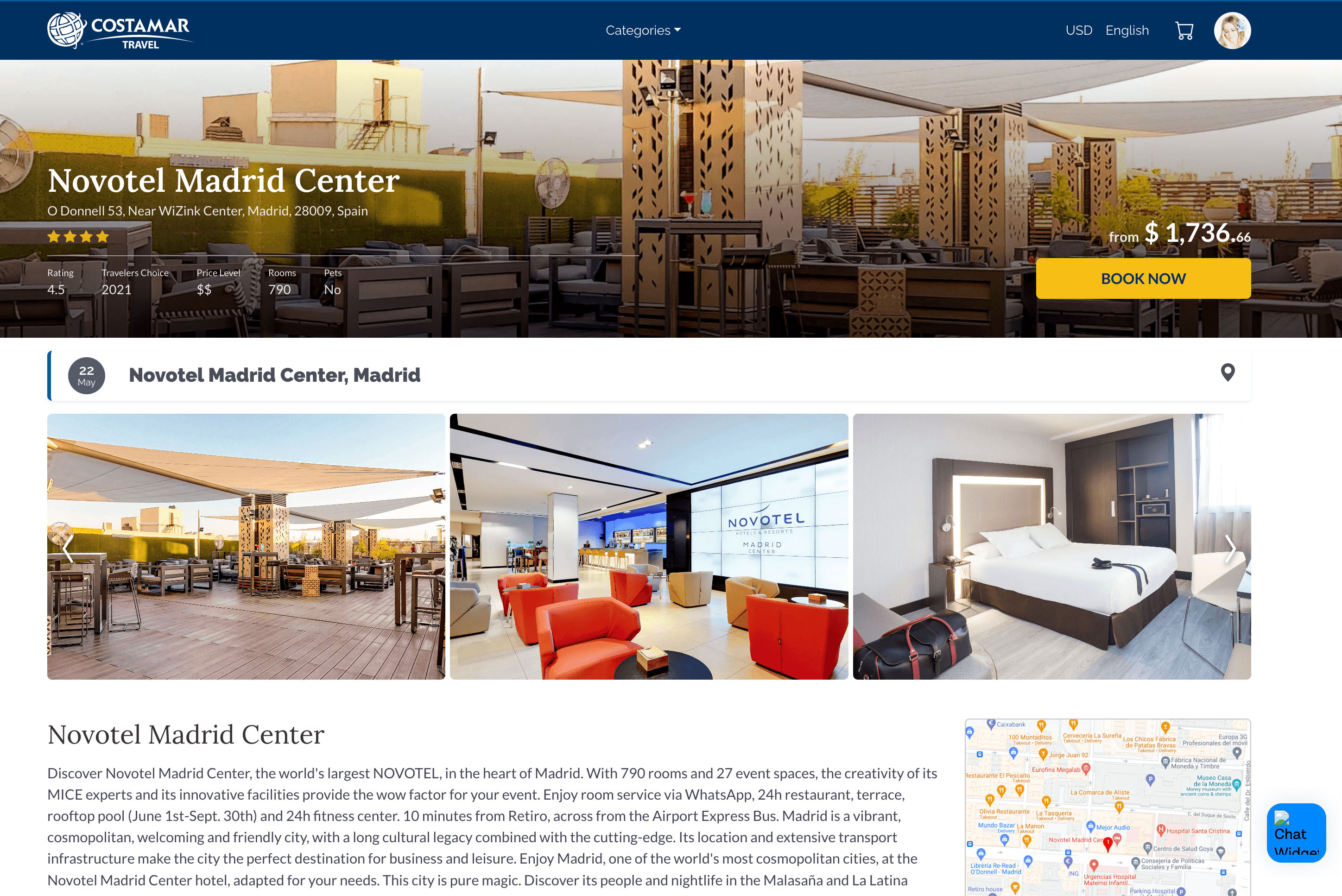 - Go to the Costamar hotel details page for the property you want to analyze.