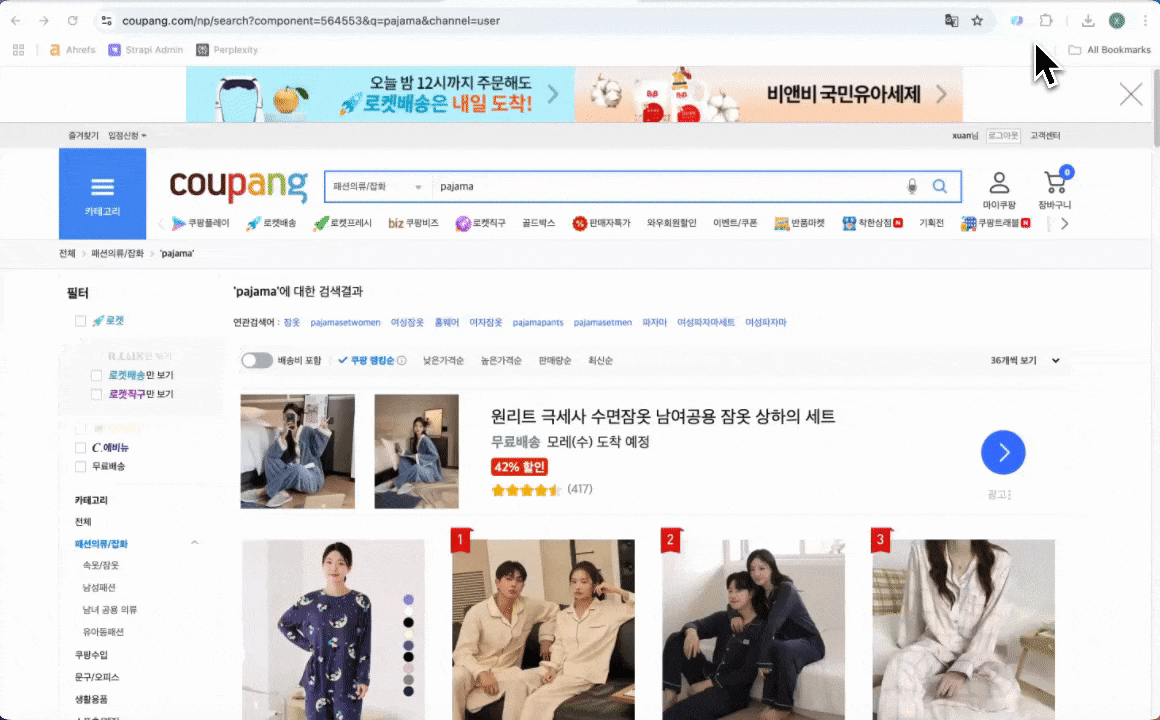 - Navigate to the Coupang search results page for your desired keyword.