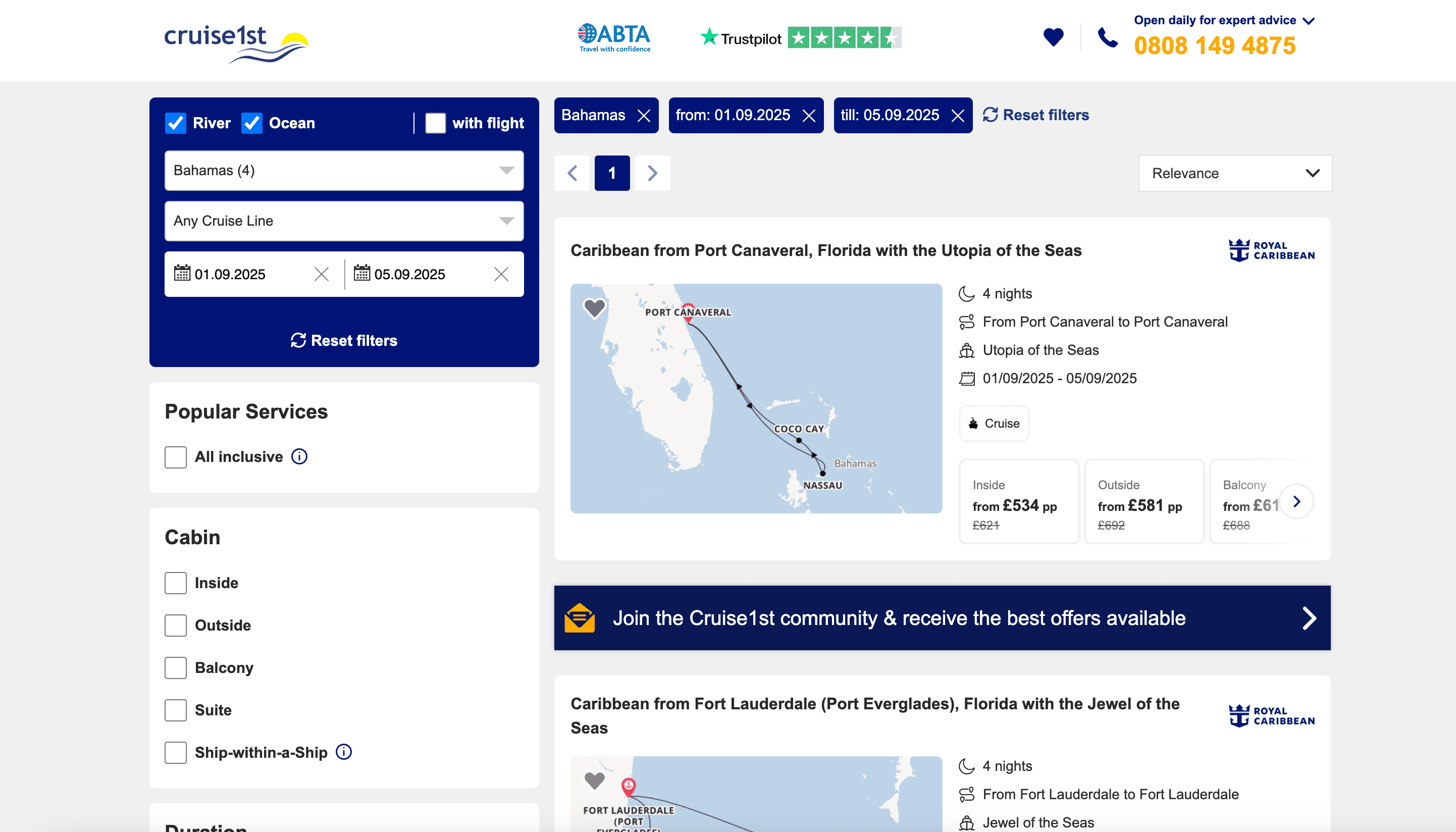 - Go to the Cruise1st.co.uk search results page.