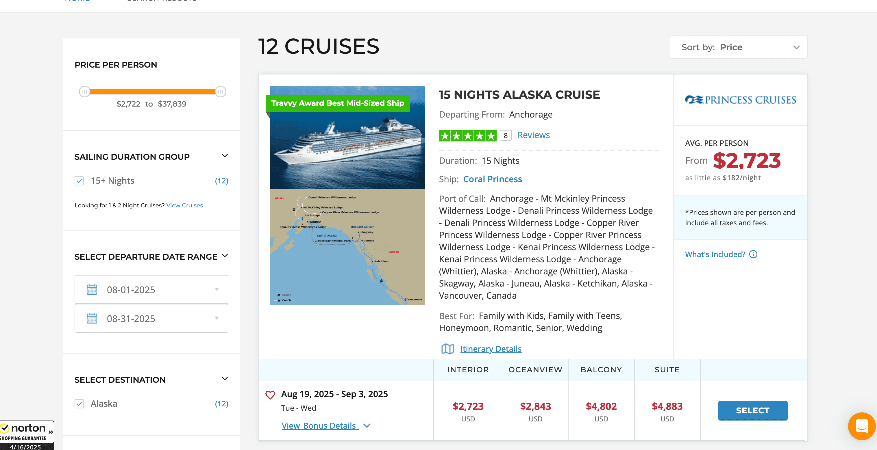 - Navigate to CruiseDirect Search or Details Page: Go to either the search results or a specific cruise details page.