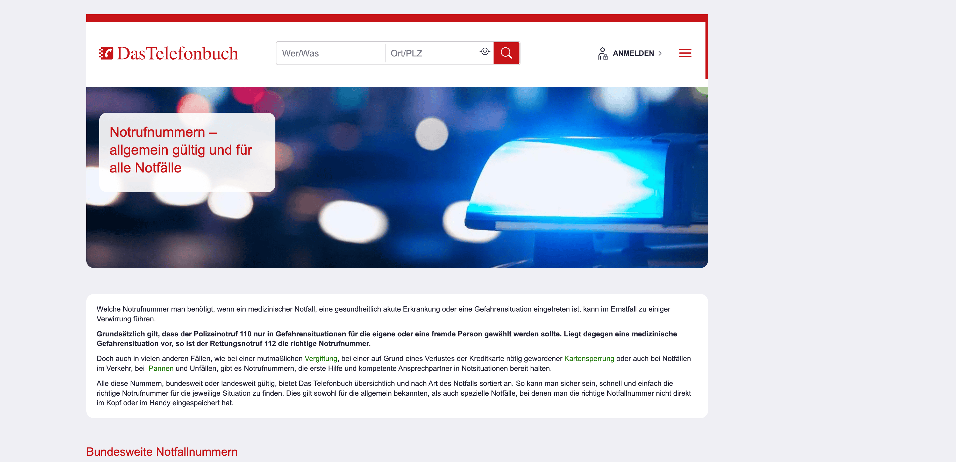 - Go to the destination page, for example: Das Telefonbuch Emergency Numbers Page.