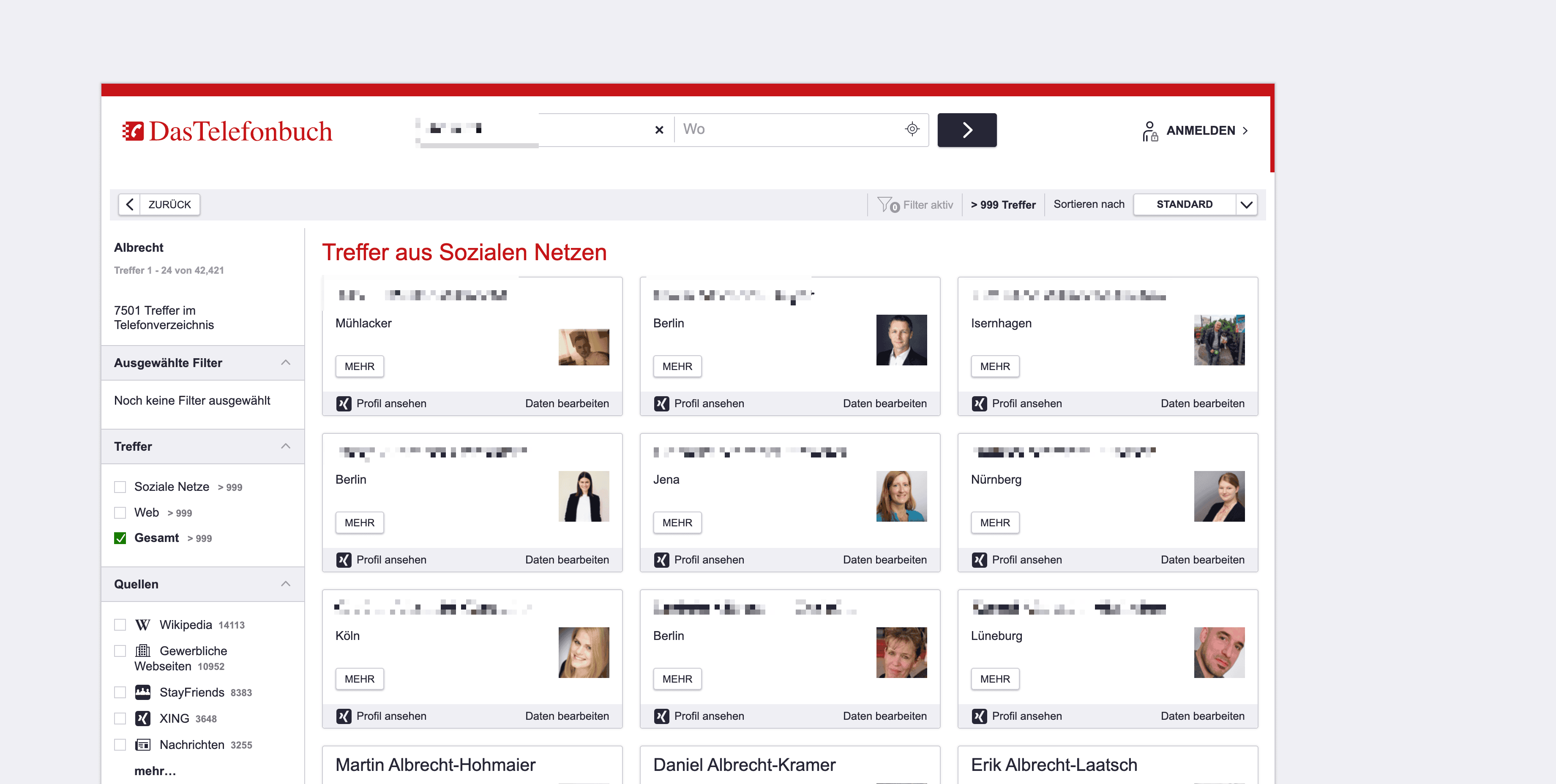 - Go to the destination page, for example: Das Telefonbuch Person Search Result Page.