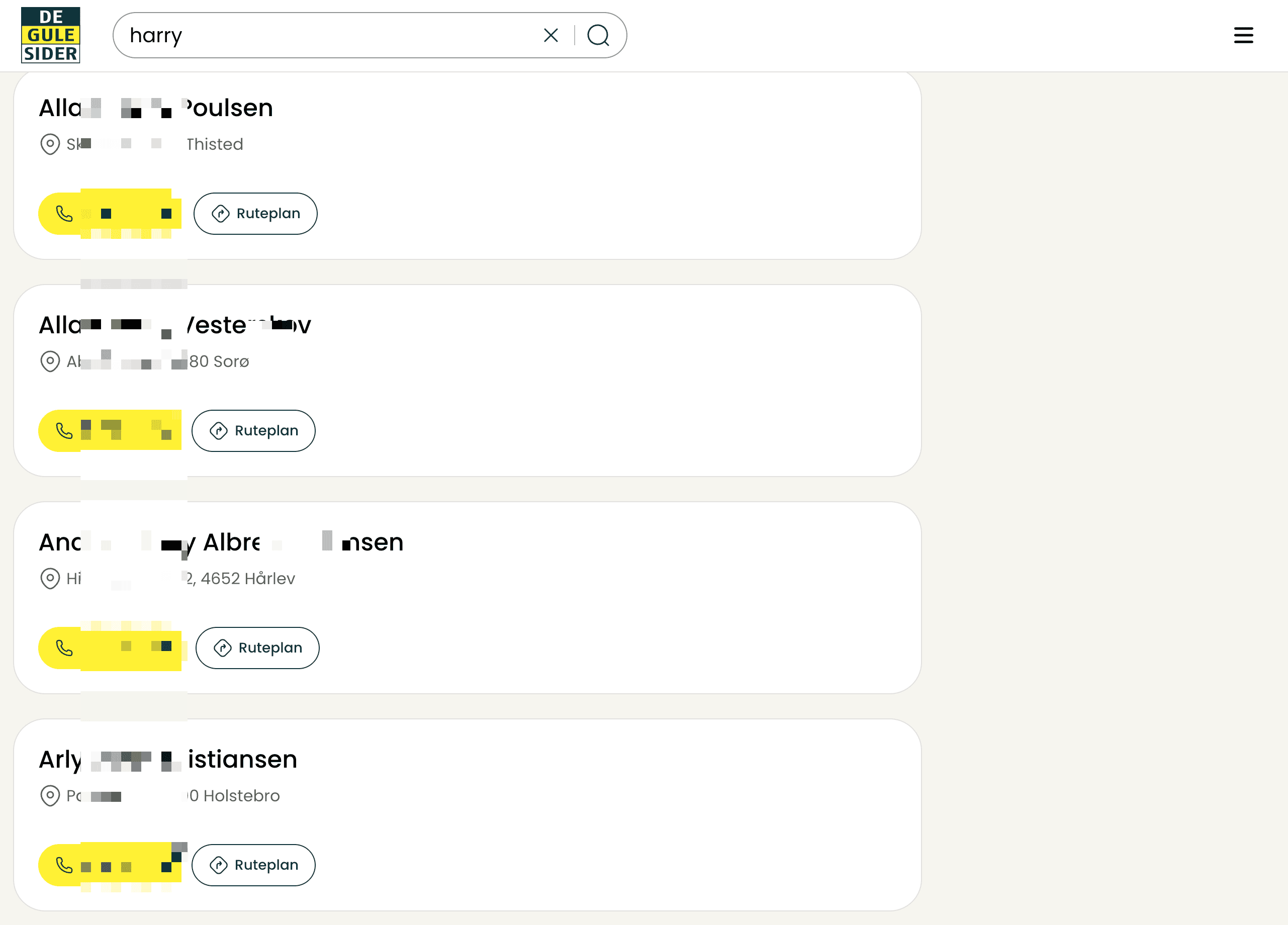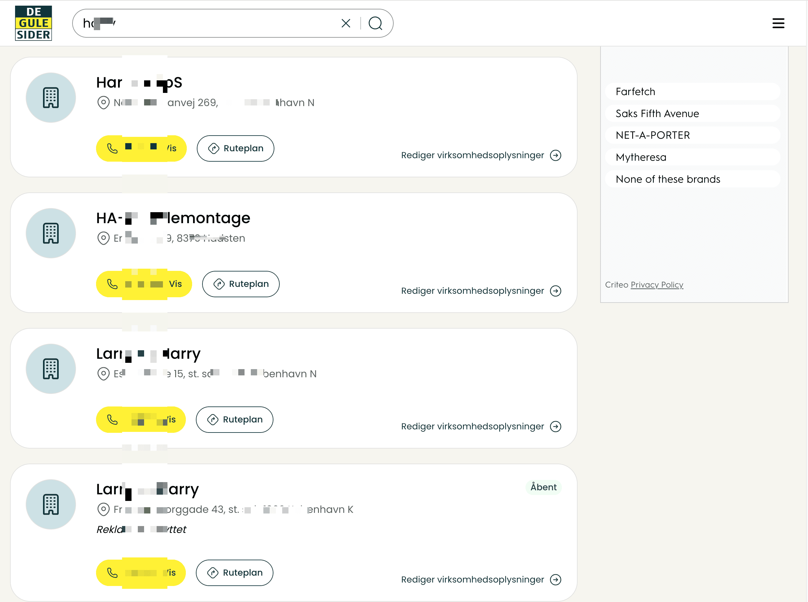 - Navigate to the Business or People Search Result Page: Go to the De Gule Sider page you want to scrape.