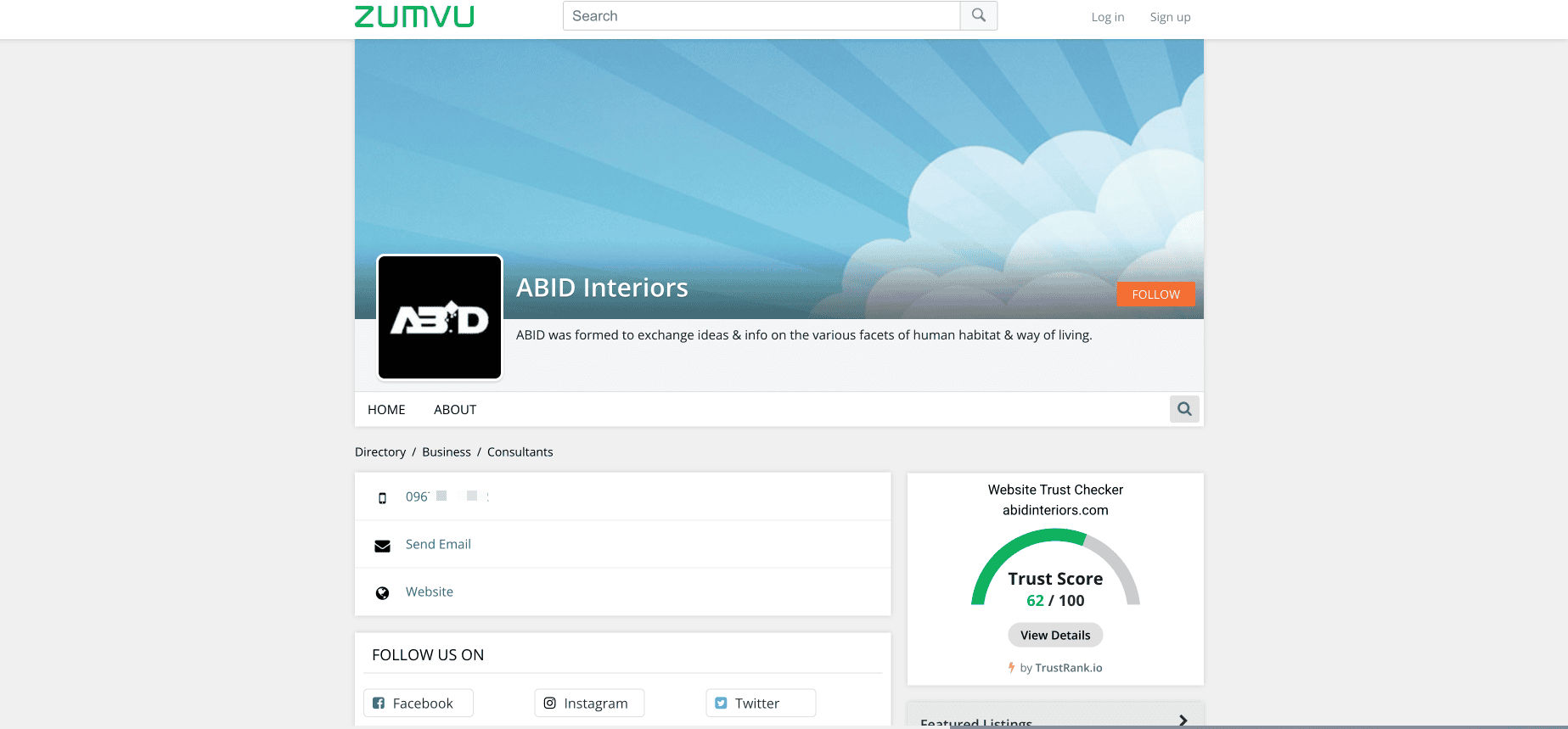 - Go to the destination page, for example: Zumvu Business Profile.