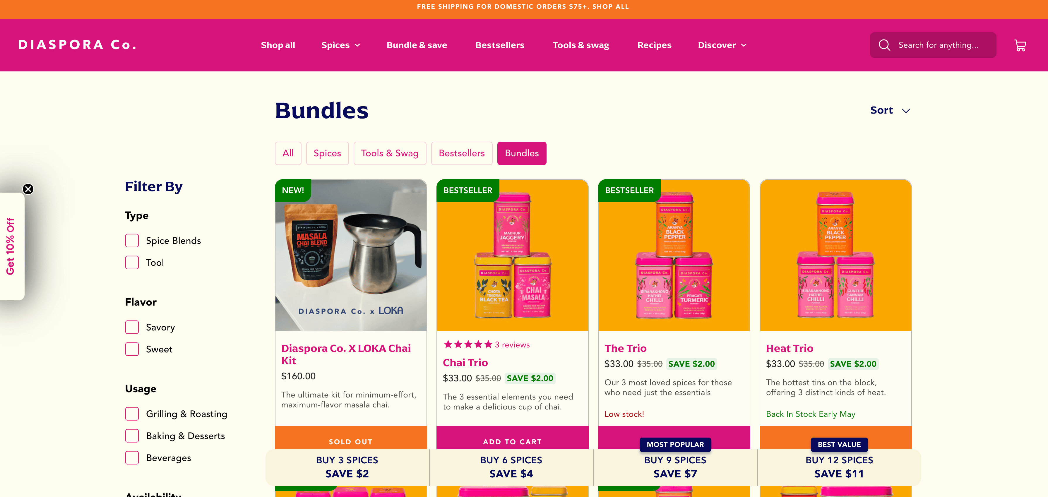 - Navigate to the Product or Bundles Listing Page: Go to the DIASPORA Co. page you want to scrape.