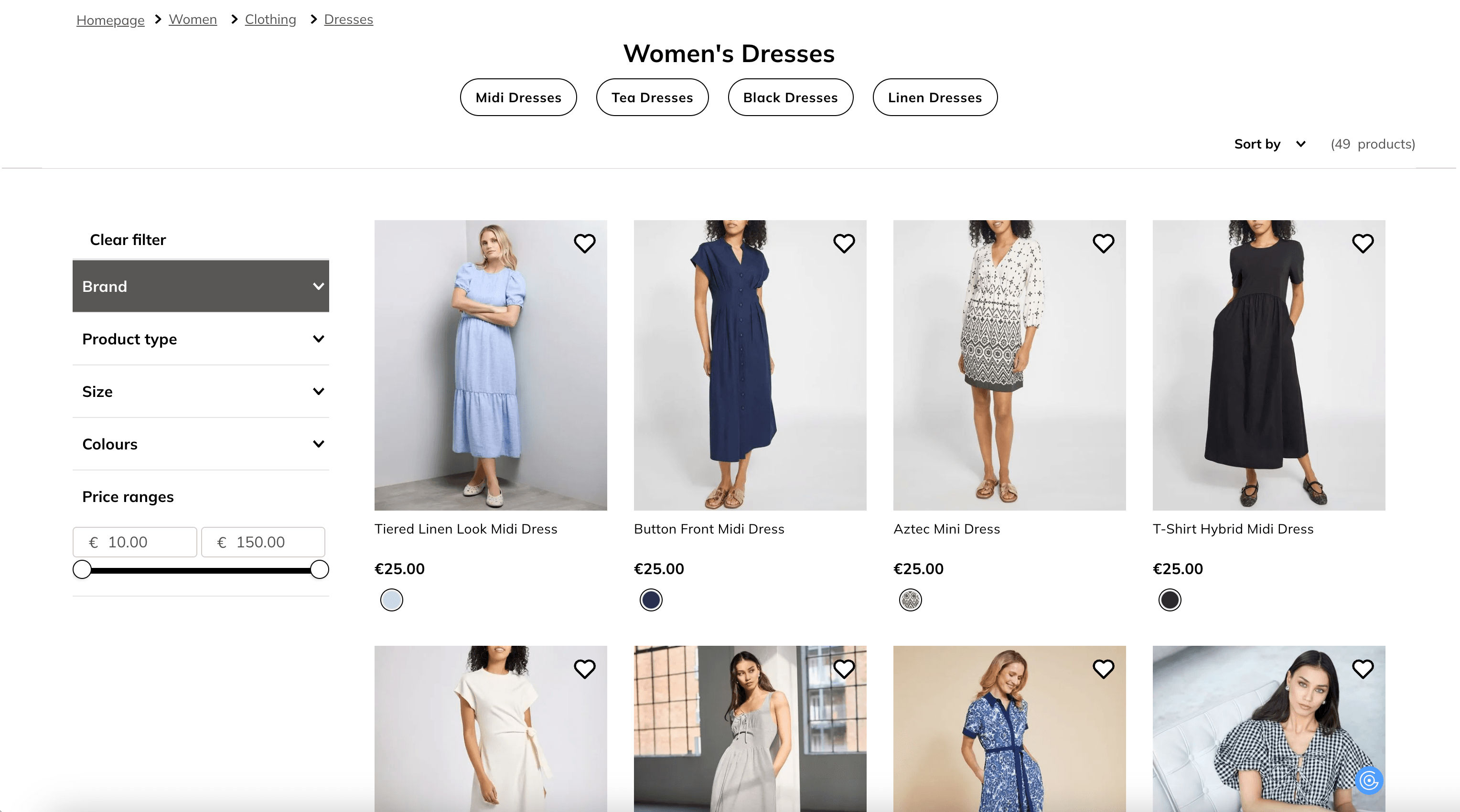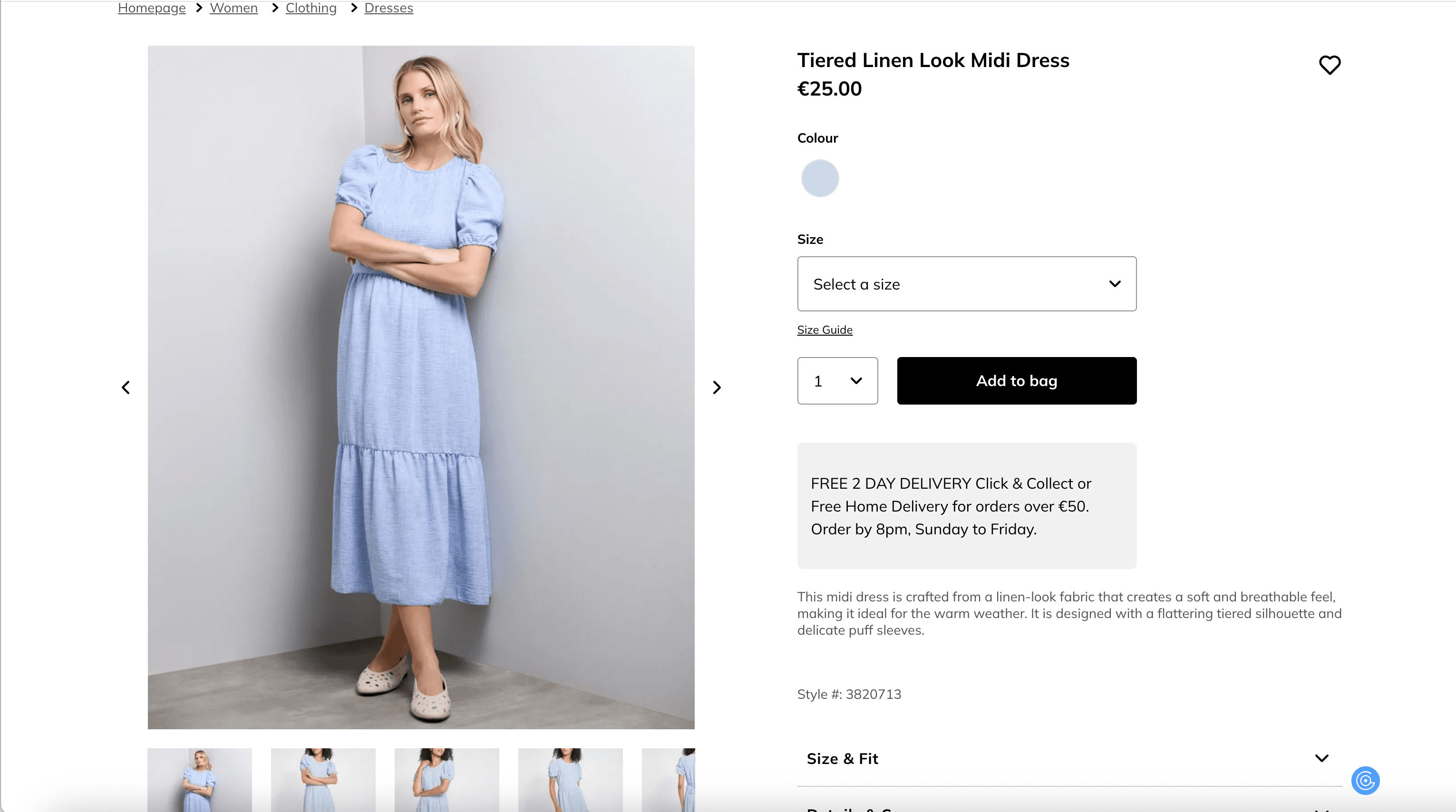 - Go to the destination page, for example: Tiered Linen Look Midi Dress.