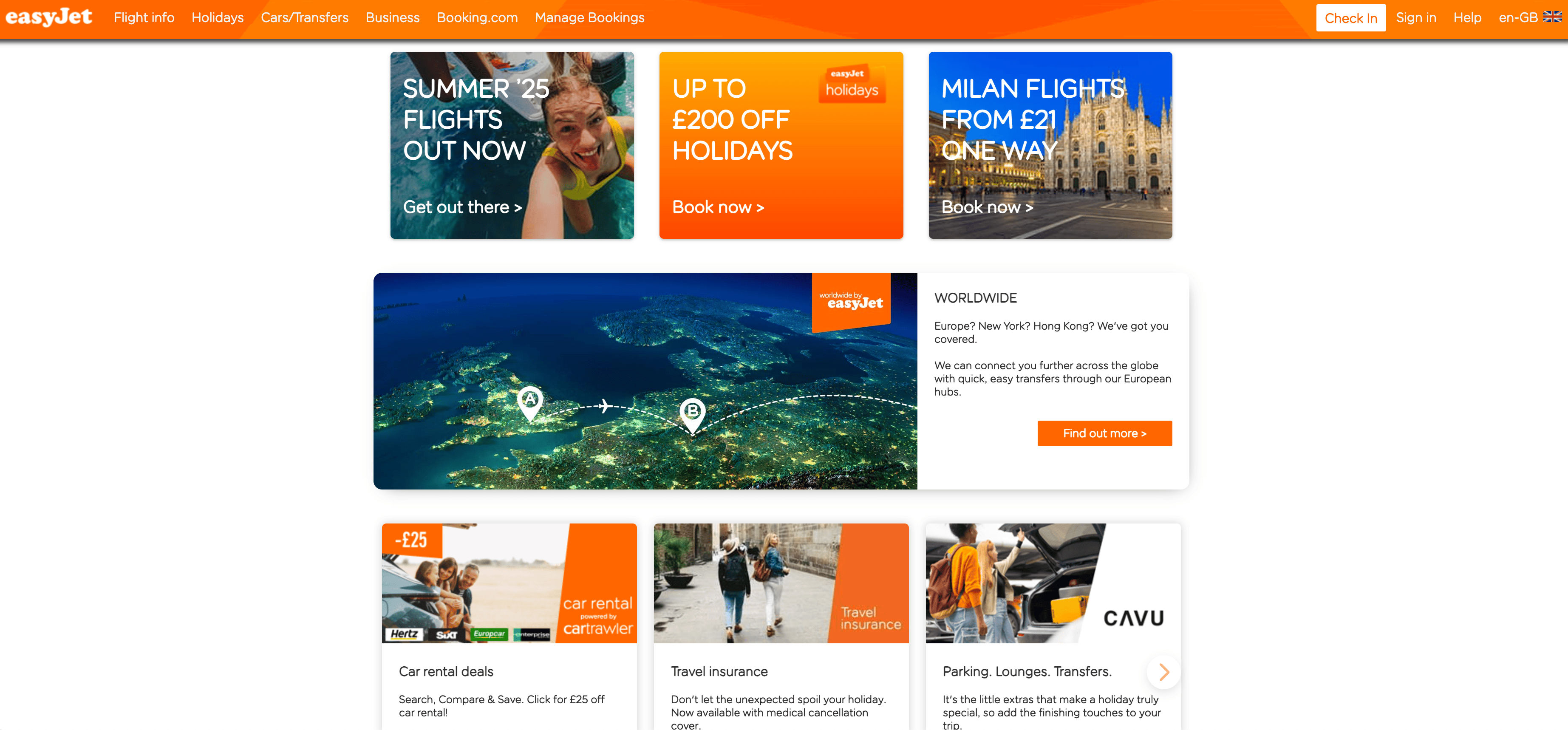 - Go to the destination page, for example: EasyJet Flight Search Result Page.
