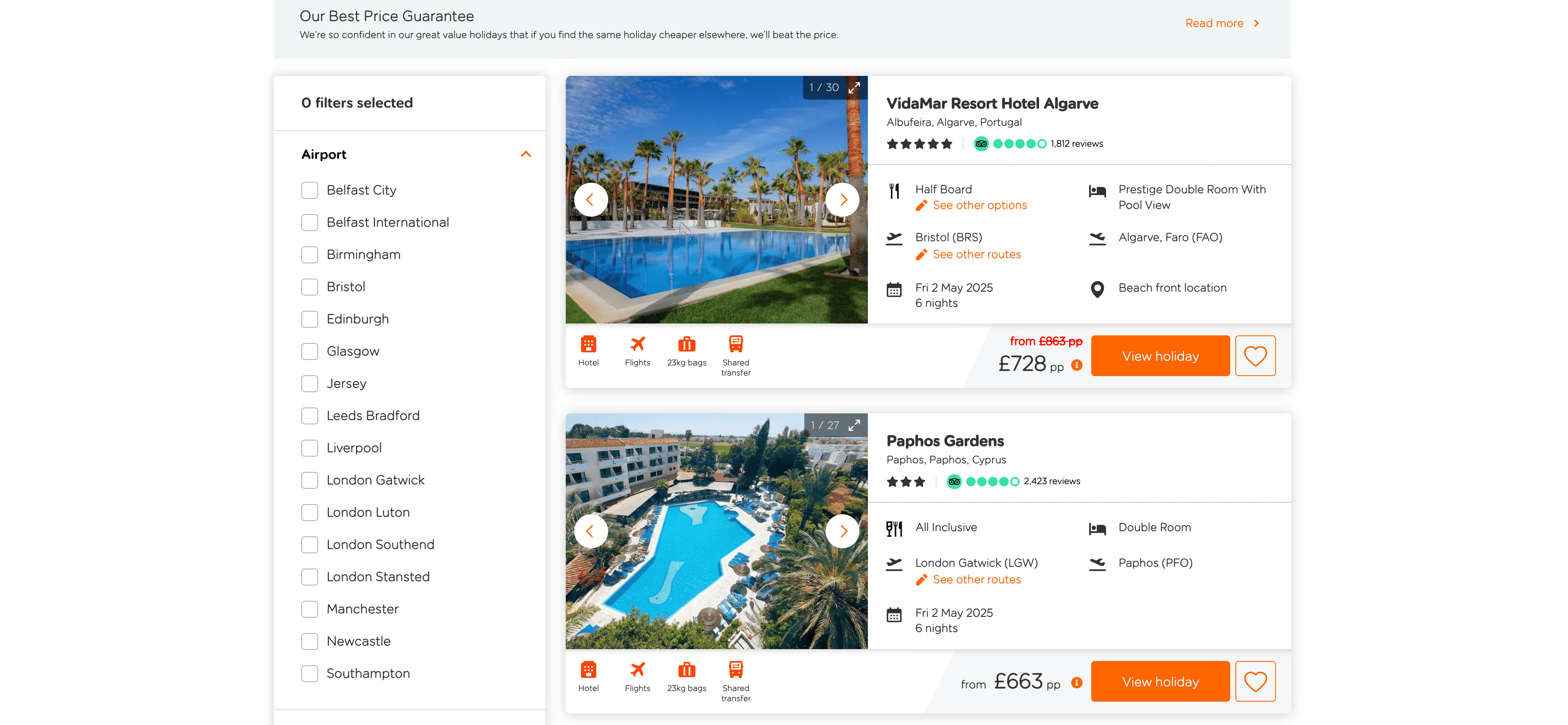 - Go to the destination page, for example: EasyJet Hotel Search Result Page.
